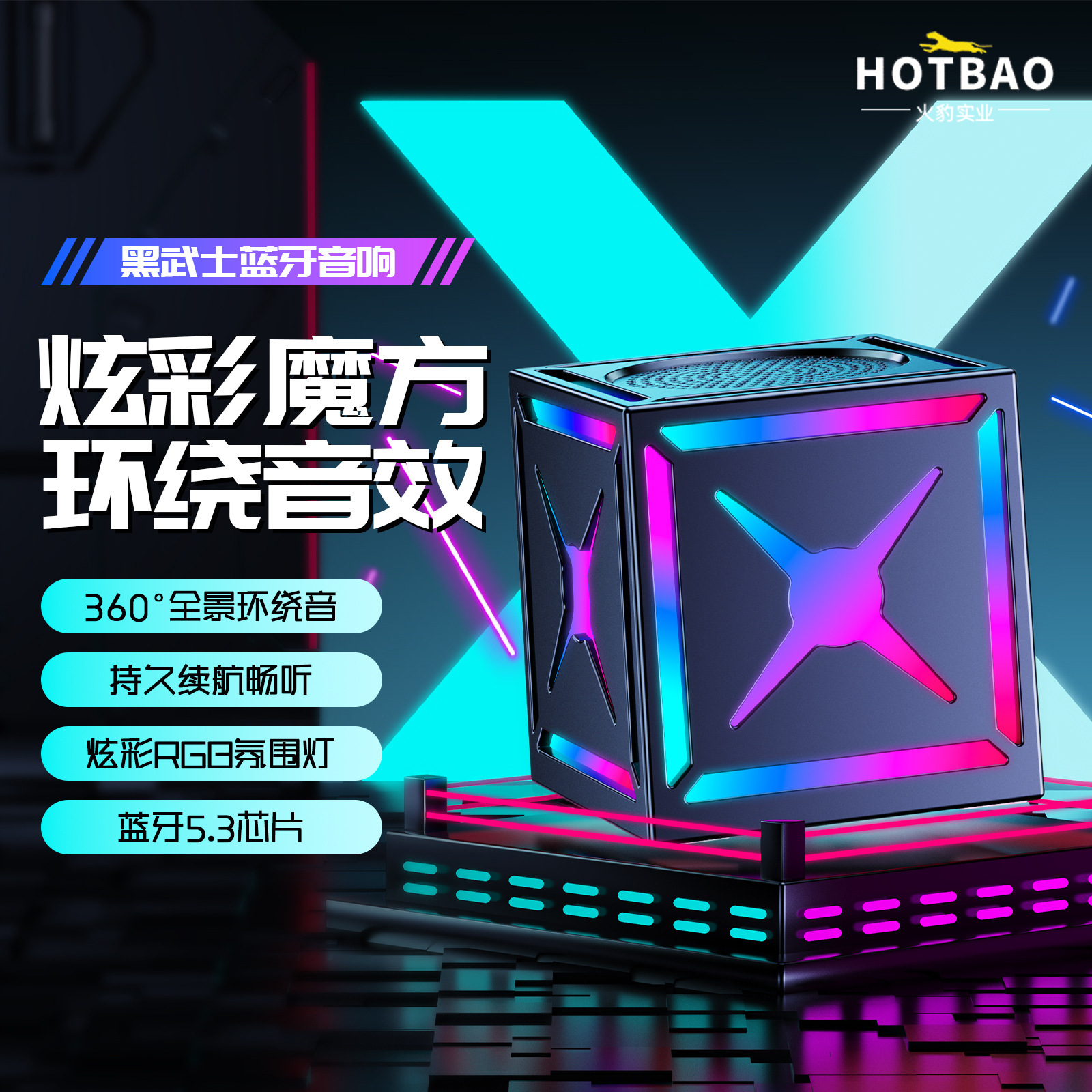 RGB重低音ブラックウォリアーBluetoothスピーカー、クールな照明効果、大音量、ワイヤレス、ポータブル、屋外用小型スピーカー