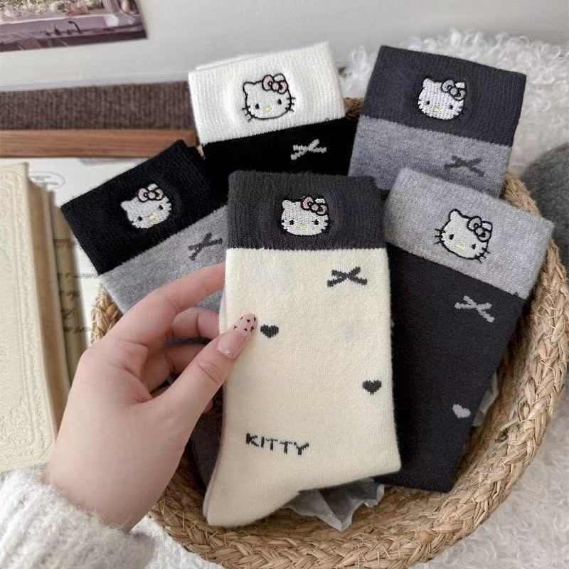 甜美可爱卡通猫咪中筒袜蝴蝶结hellokitty袜子秋冬款欧货爆款袜子