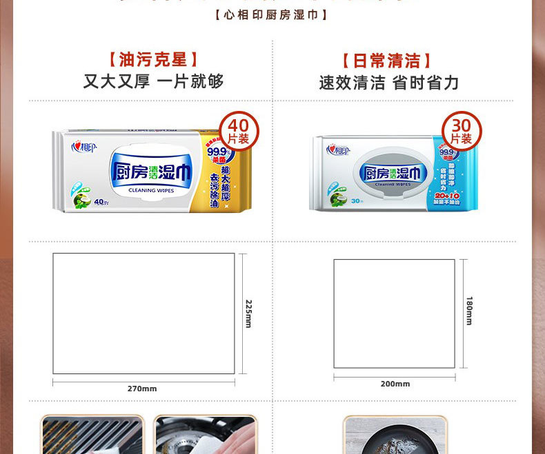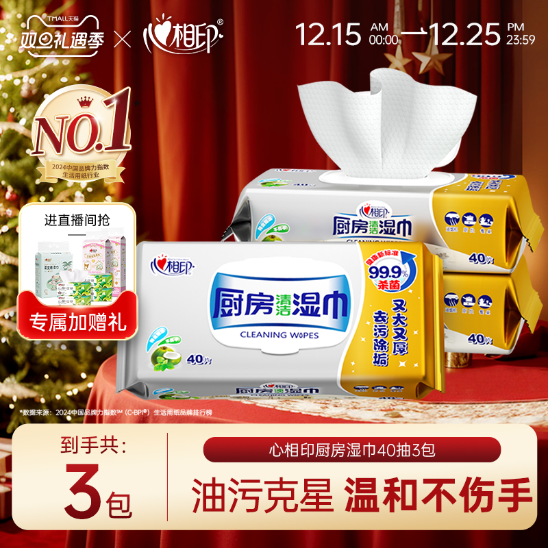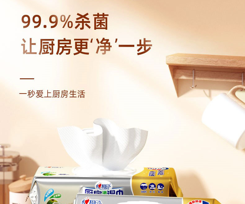 心相印厨房湿纸巾去污去油家用40片厨房擦油清洁湿纸巾厨房专用纸