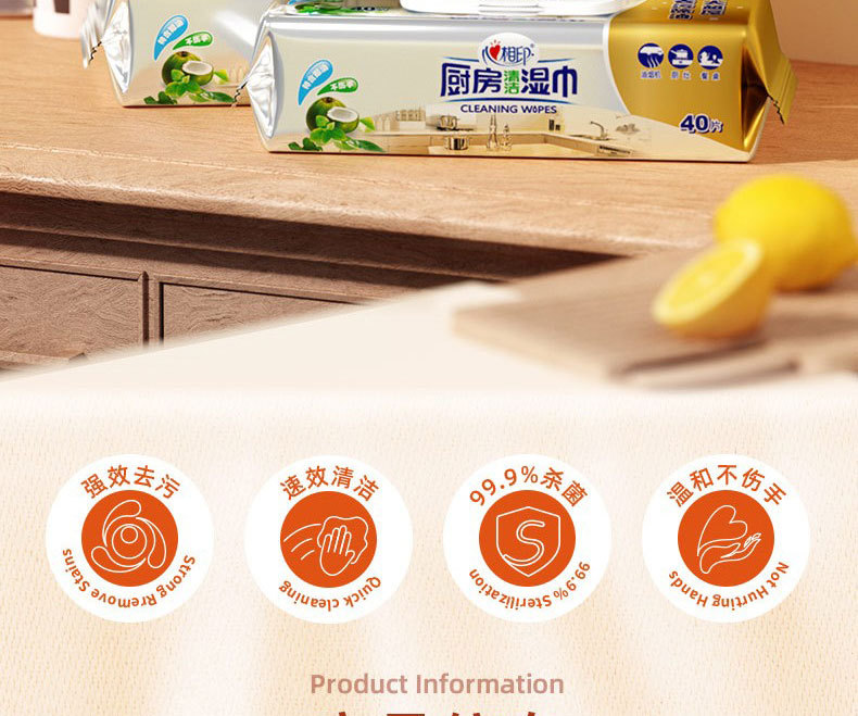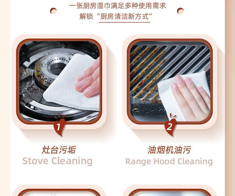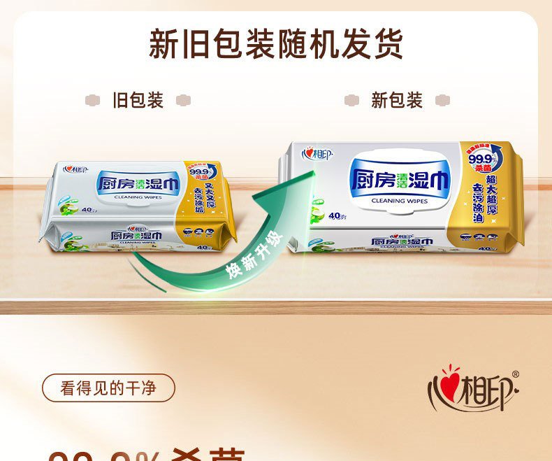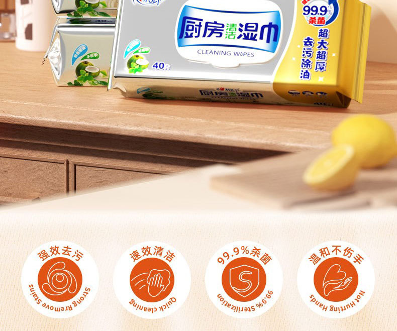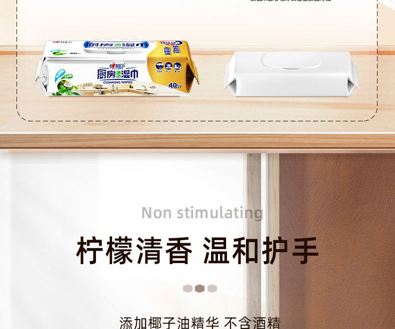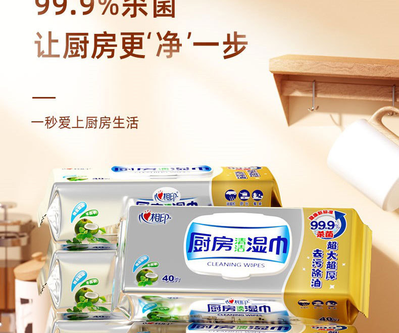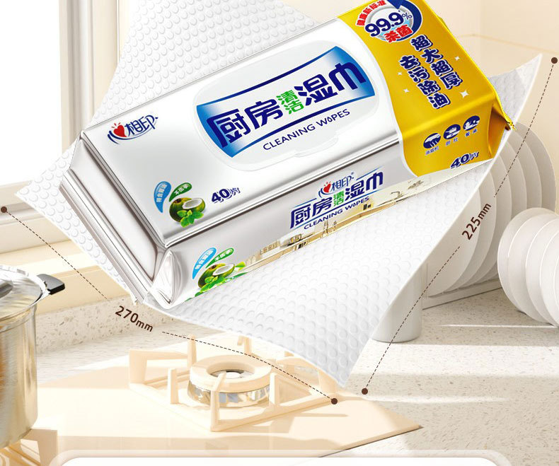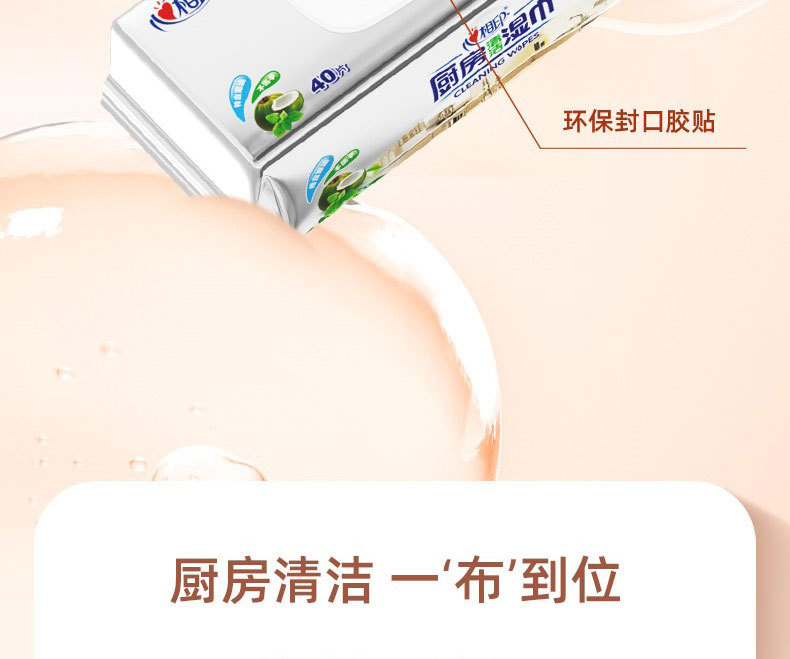 心相印厨房湿巾40片装清洁除重油污油烟厨房纸湿纸巾批发省力去油