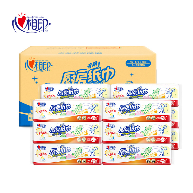 心相印绒立方厨房纸巾6卷装85节印吸油吸水厨房专用纸可水洗