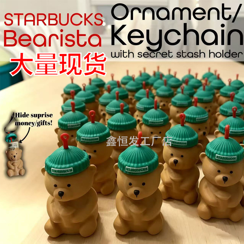 跨境新品Bear clerk keychain星巴克熊店员钥匙扣3D打印圣诞装饰