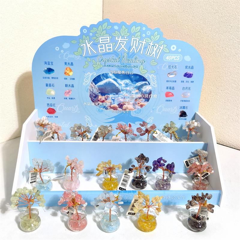 新款文创天然水晶摇钱发财树鱼缸摆件纯手工水晶石摆件小礼品批发