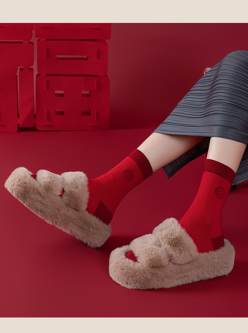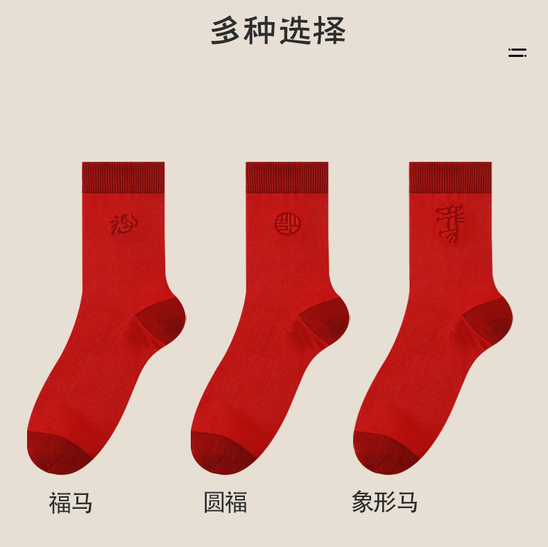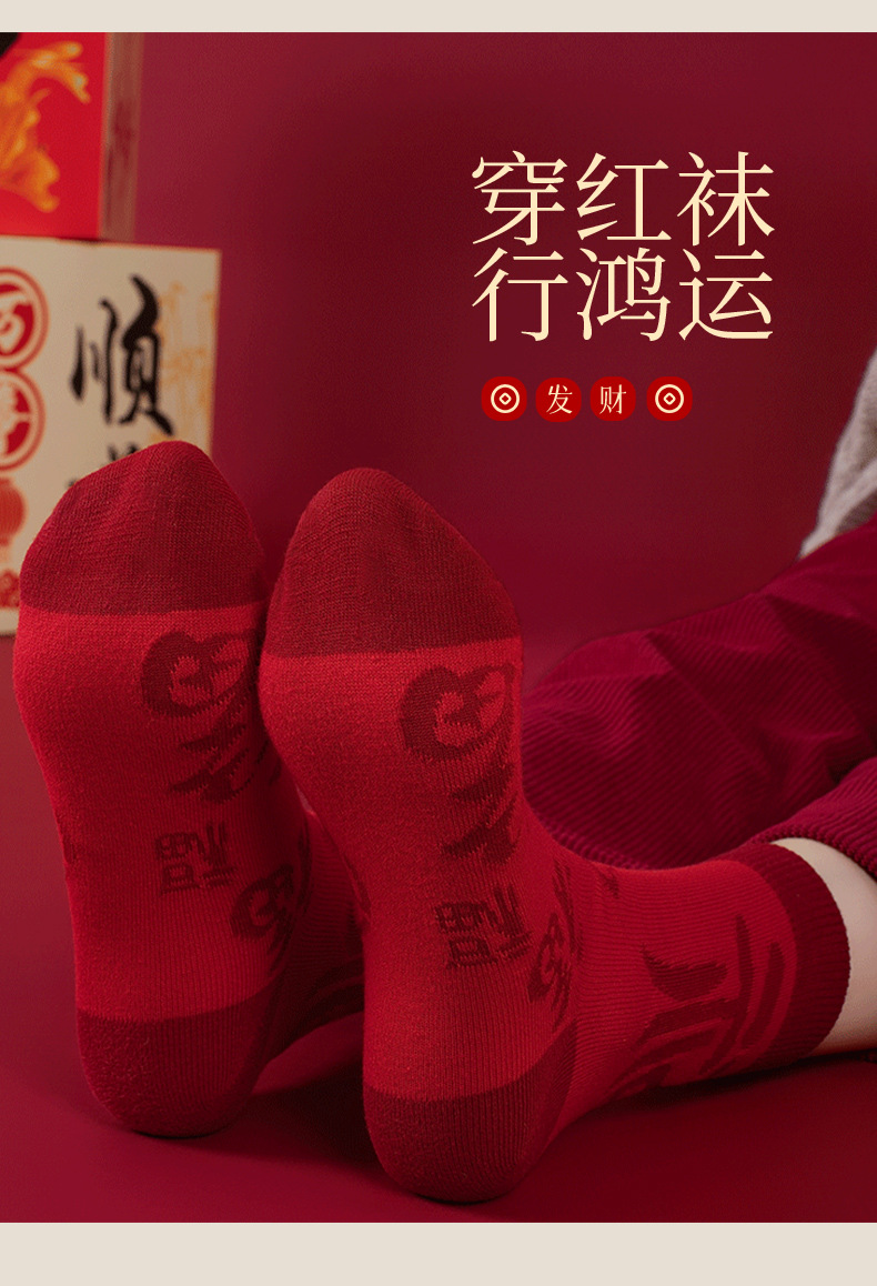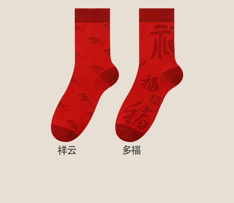本命年袜子新年秋冬男女红袜子发财棉袜中长筒2026爆款批发诸暨