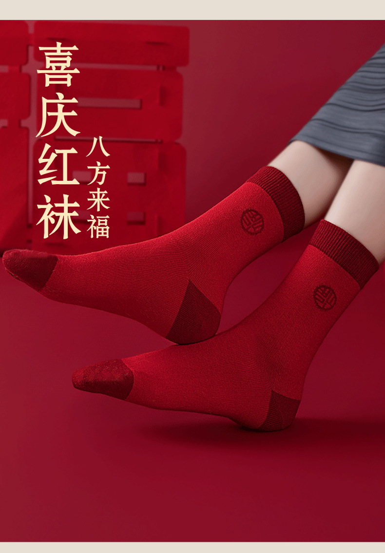 大红袜子喜字结婚棉袜中筒本命年2025新款爆款批发诸暨源头工厂家
