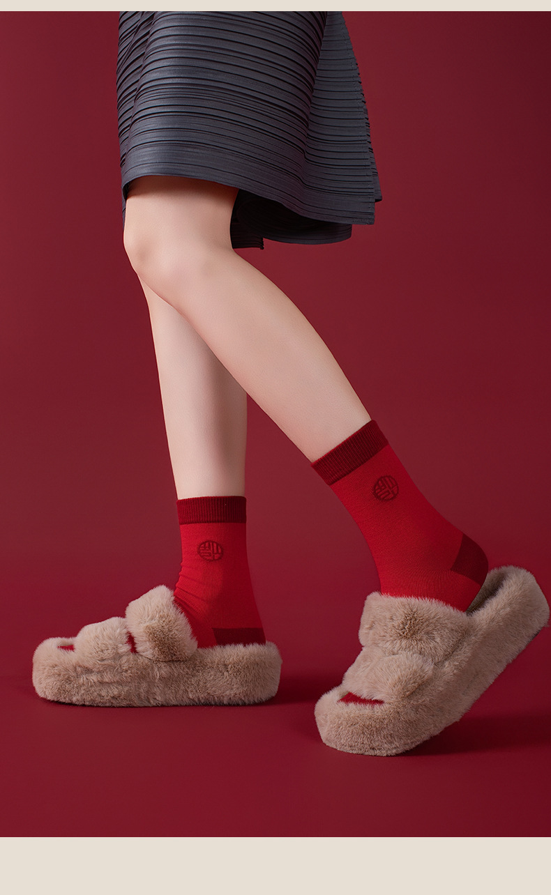 宝娜斯本命年红袜子男女情侣中筒棉袜大红色袜子新年礼物结婚喜袜