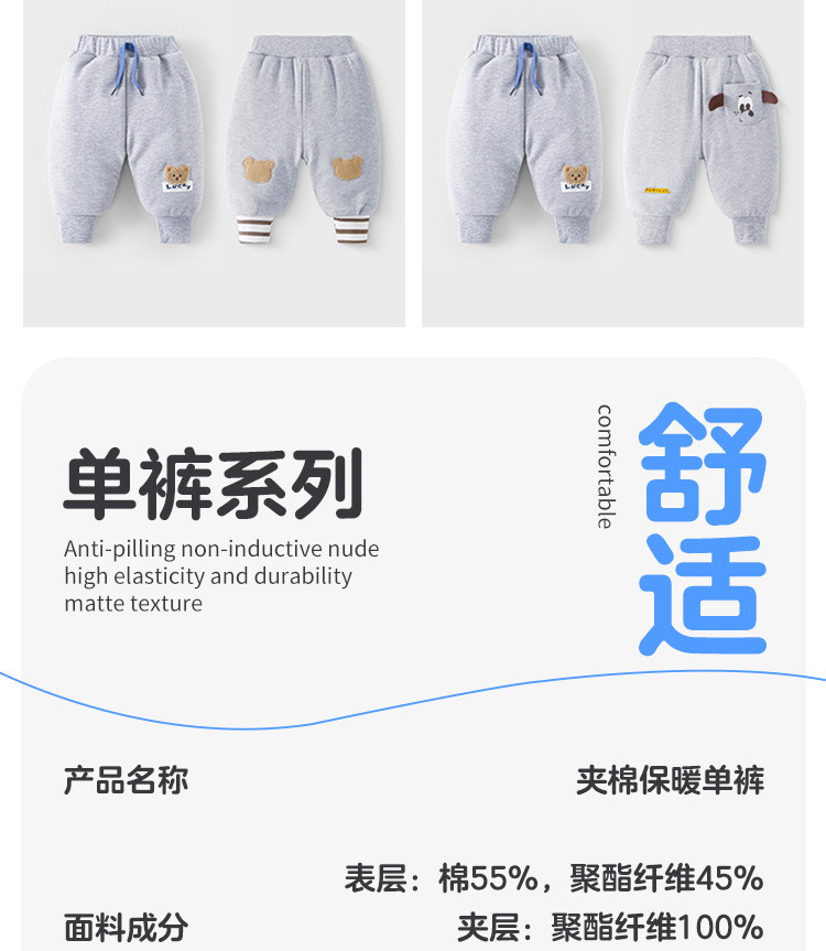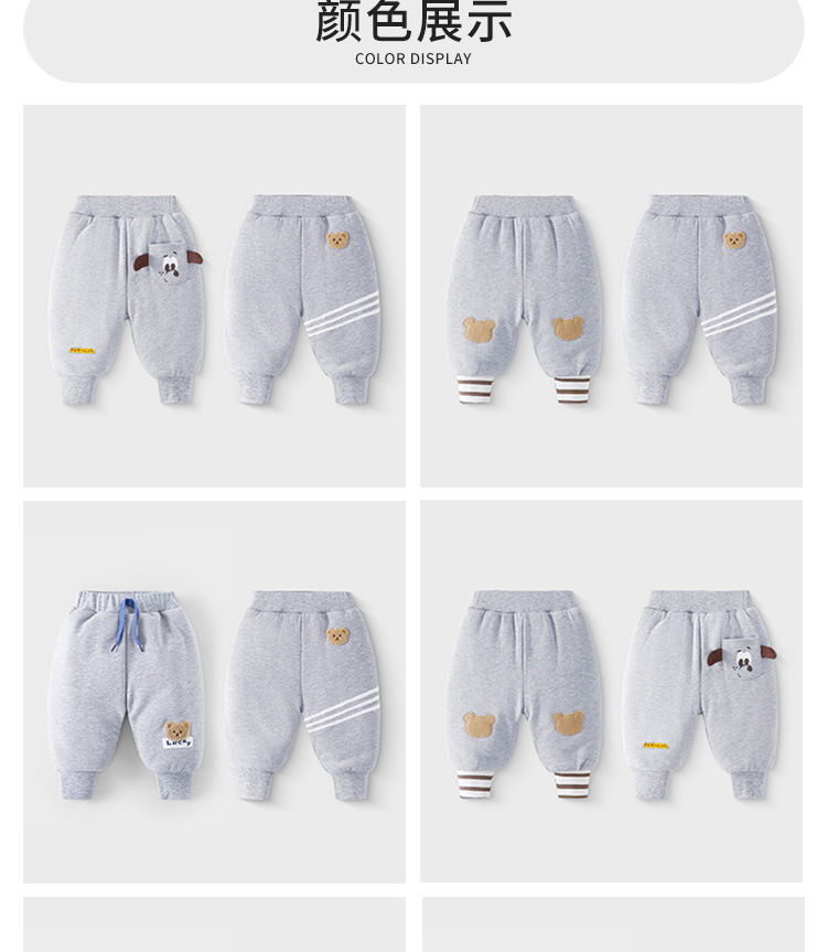 婴幼儿秋季外出加厚保暖裤男女童卡通可爱卫裤秋冬款小童夹棉长裤