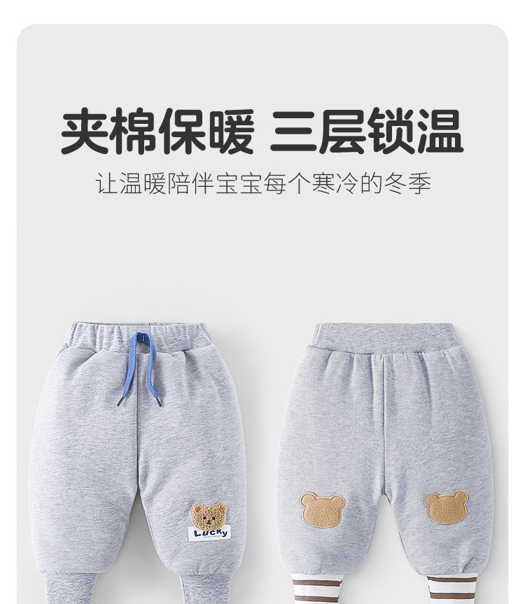 婴幼儿秋季夹棉卫裤男女宝宝卡通可爱长裤秋冬款外出加厚保暖裤子