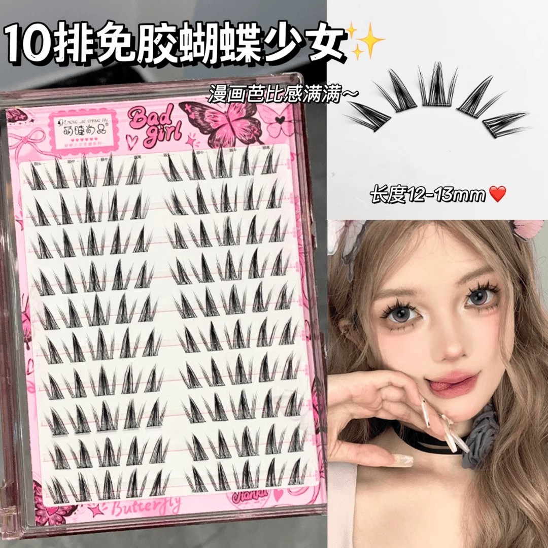 萌えまつげ尚品10列大容量無糊脱怠け者魚尾偽まつげ自然単クラスタ純欲まつげ