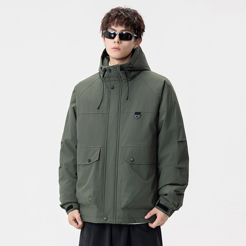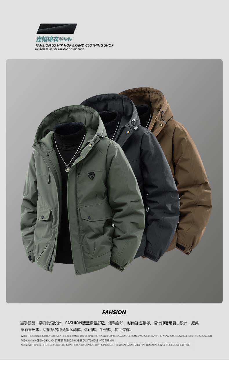 大码男士新款冲锋外套棉衣冬季加厚加棉保暖工装连帽加肥加大冬装