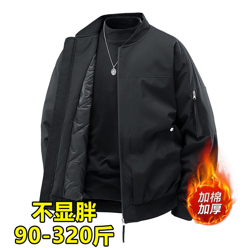 大码秋冬季新款宽松休闲纯色棉服加肥加大码立领夹克加厚男款外套
