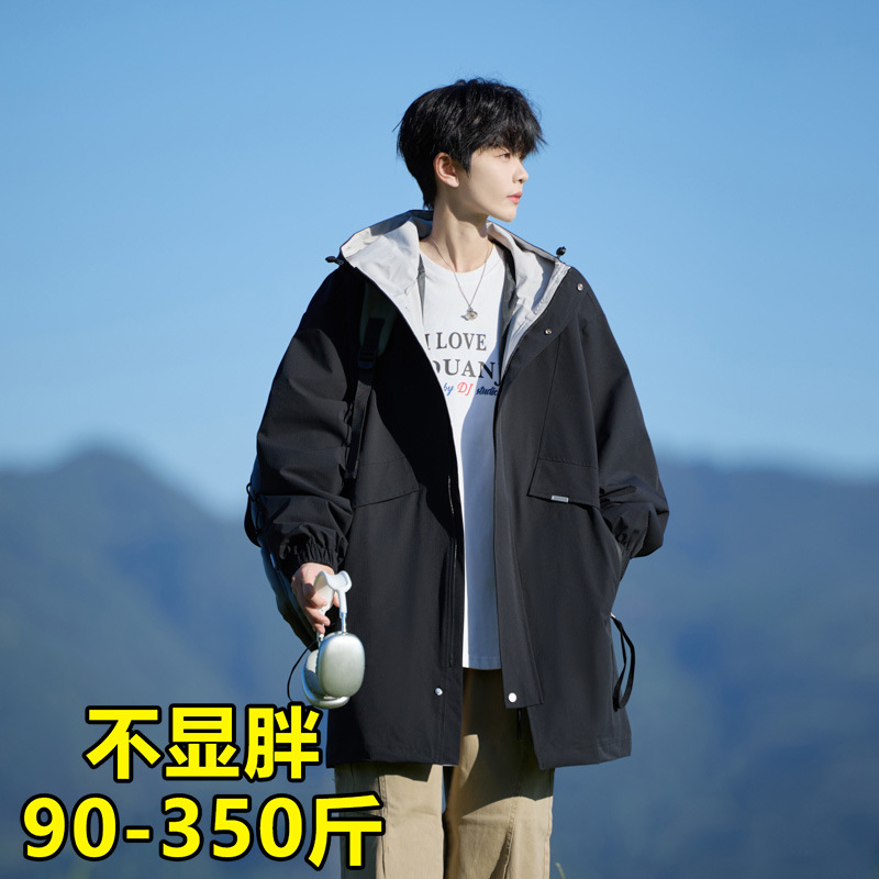 大码秋冬季加肥加大码冲锋外套宽松胖子百搭休闲户外男款加厚外套