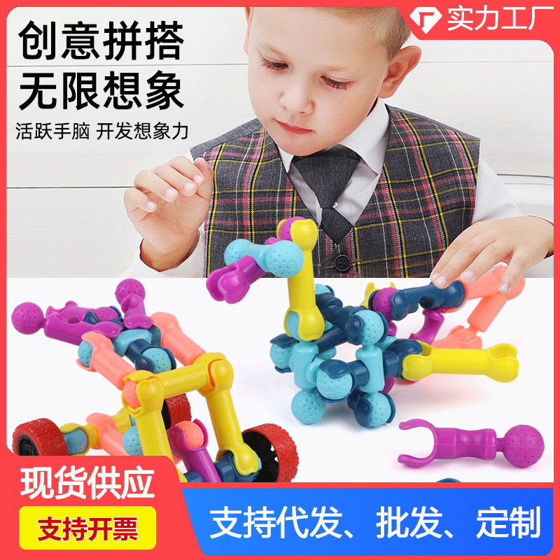 子供のおもちゃの骨格の積み木は大きい粒子の百変の構造のDIYの早教のおもちゃの育成訓練機関の贈り物を挿し込みます。