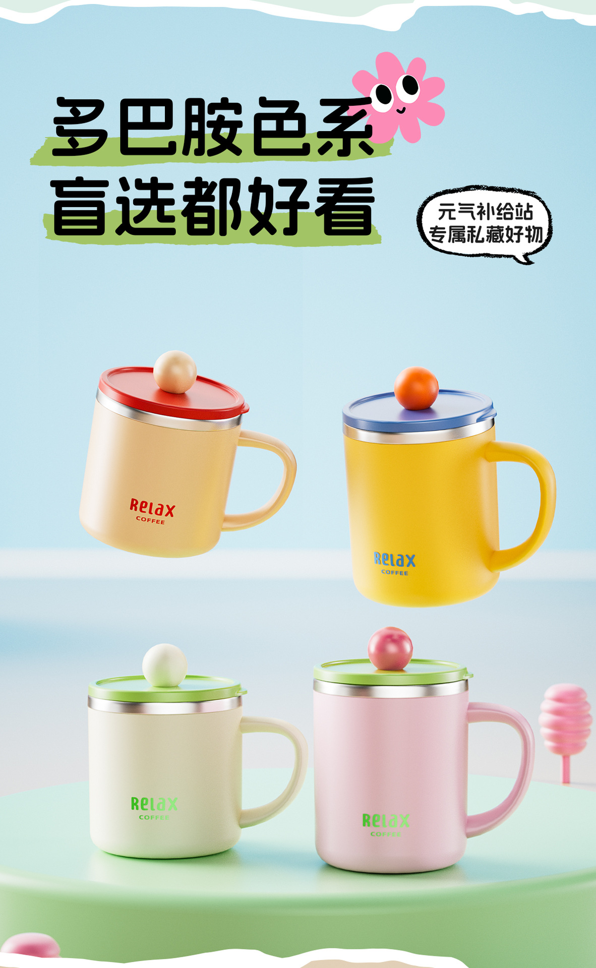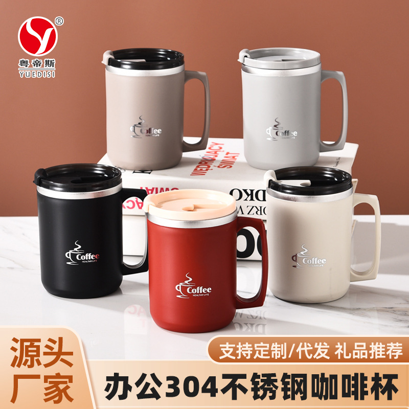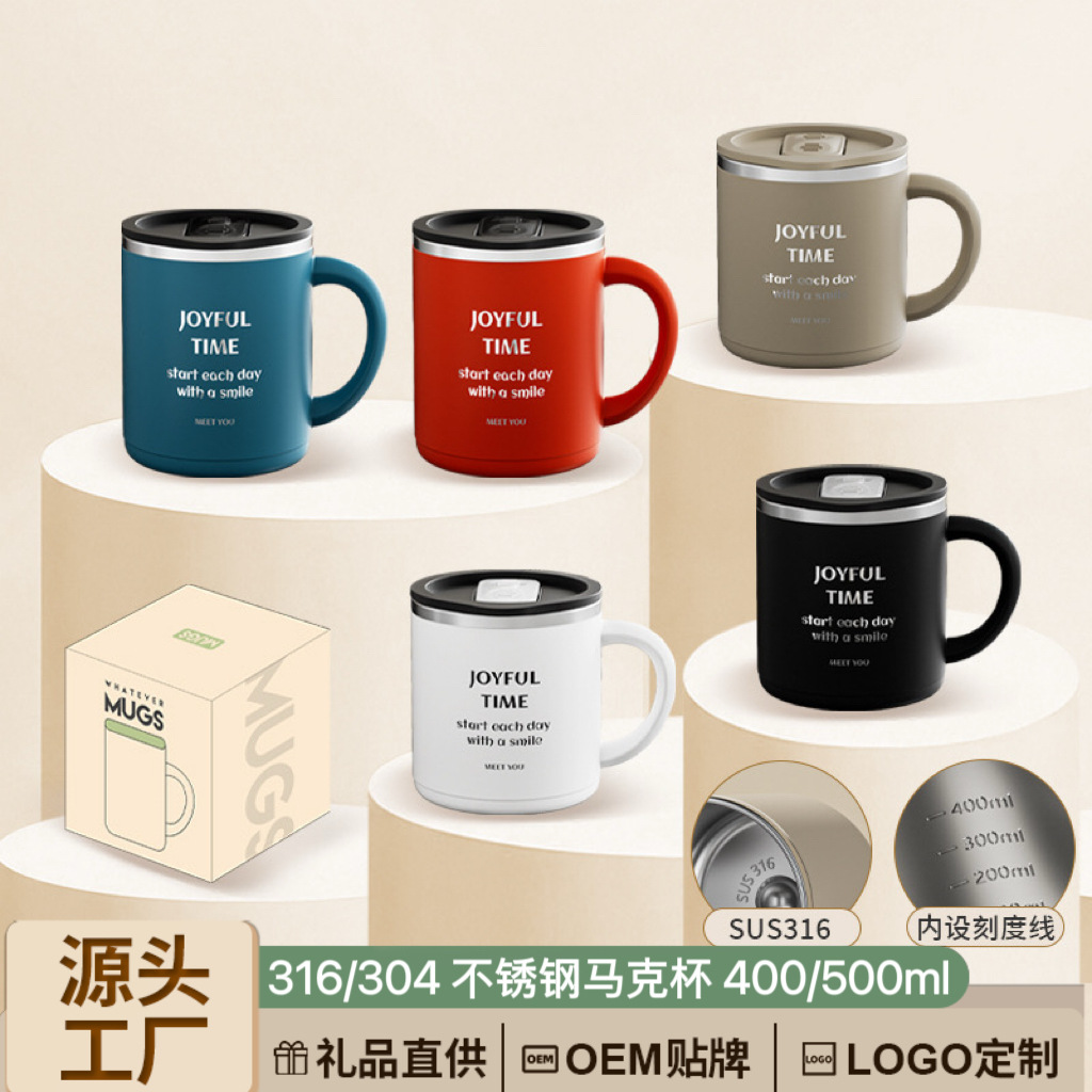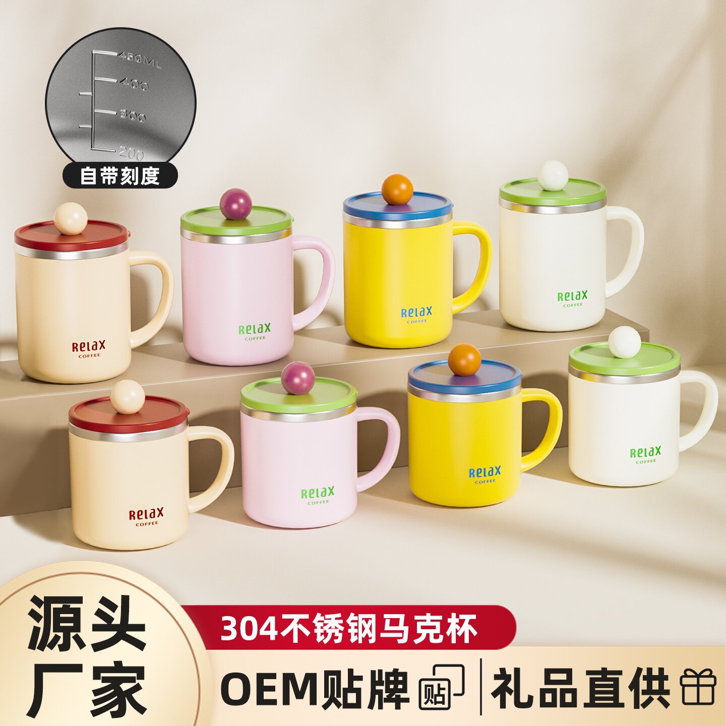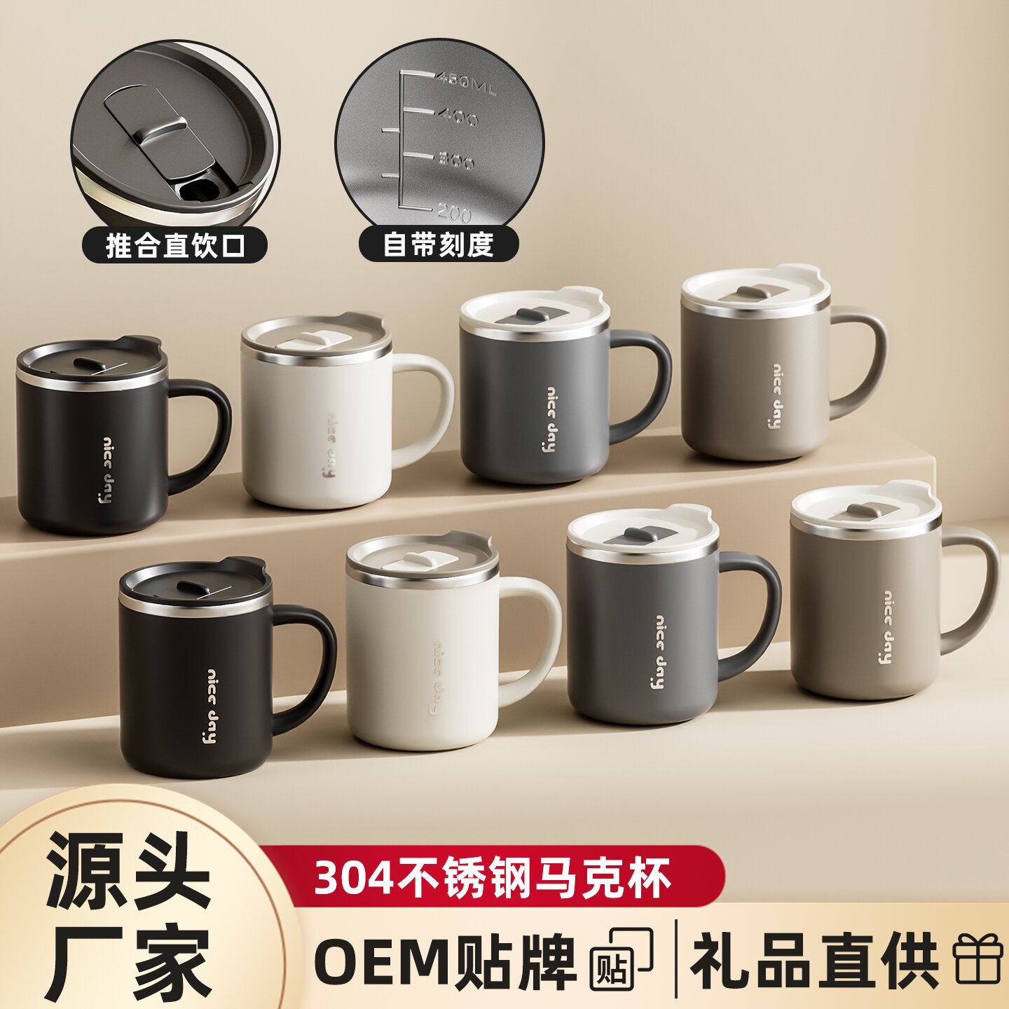 304不锈钢多巴胺水杯带刻度线学生宿舍办公室装水带盖马克杯 礼品