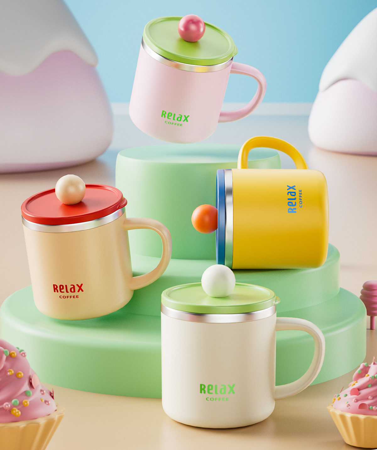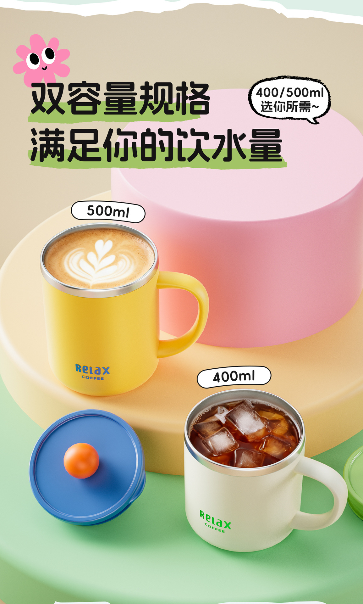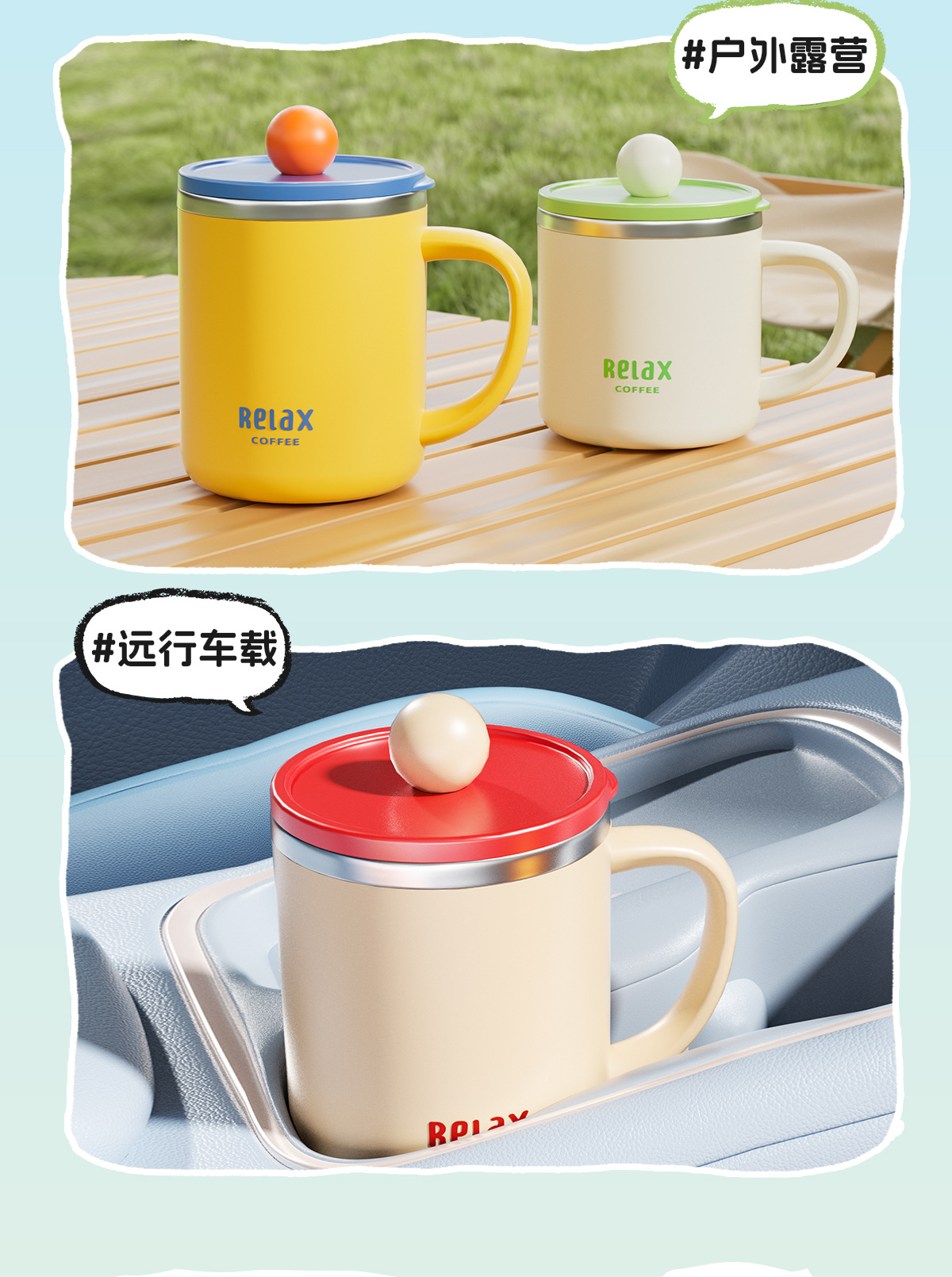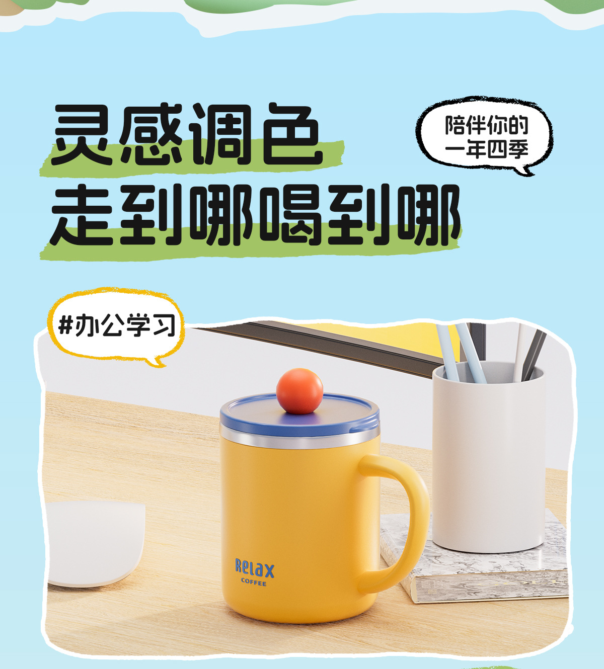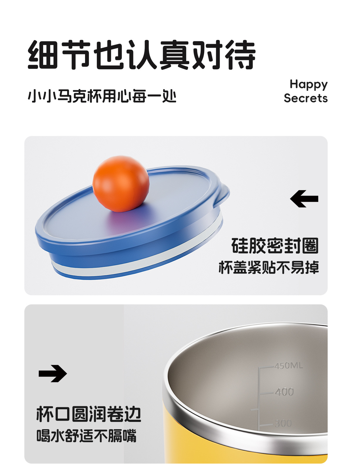 304不锈钢多巴胺水杯带刻度线学生宿舍办公室装水带盖马克杯 礼品