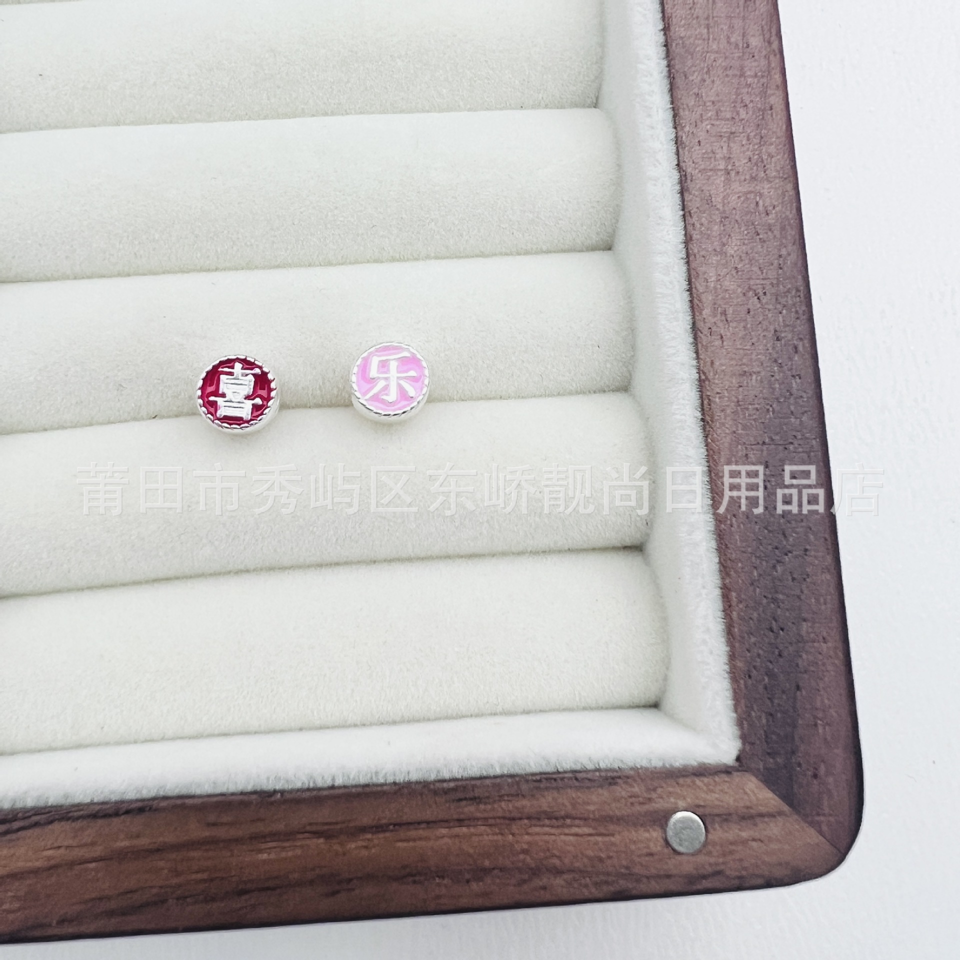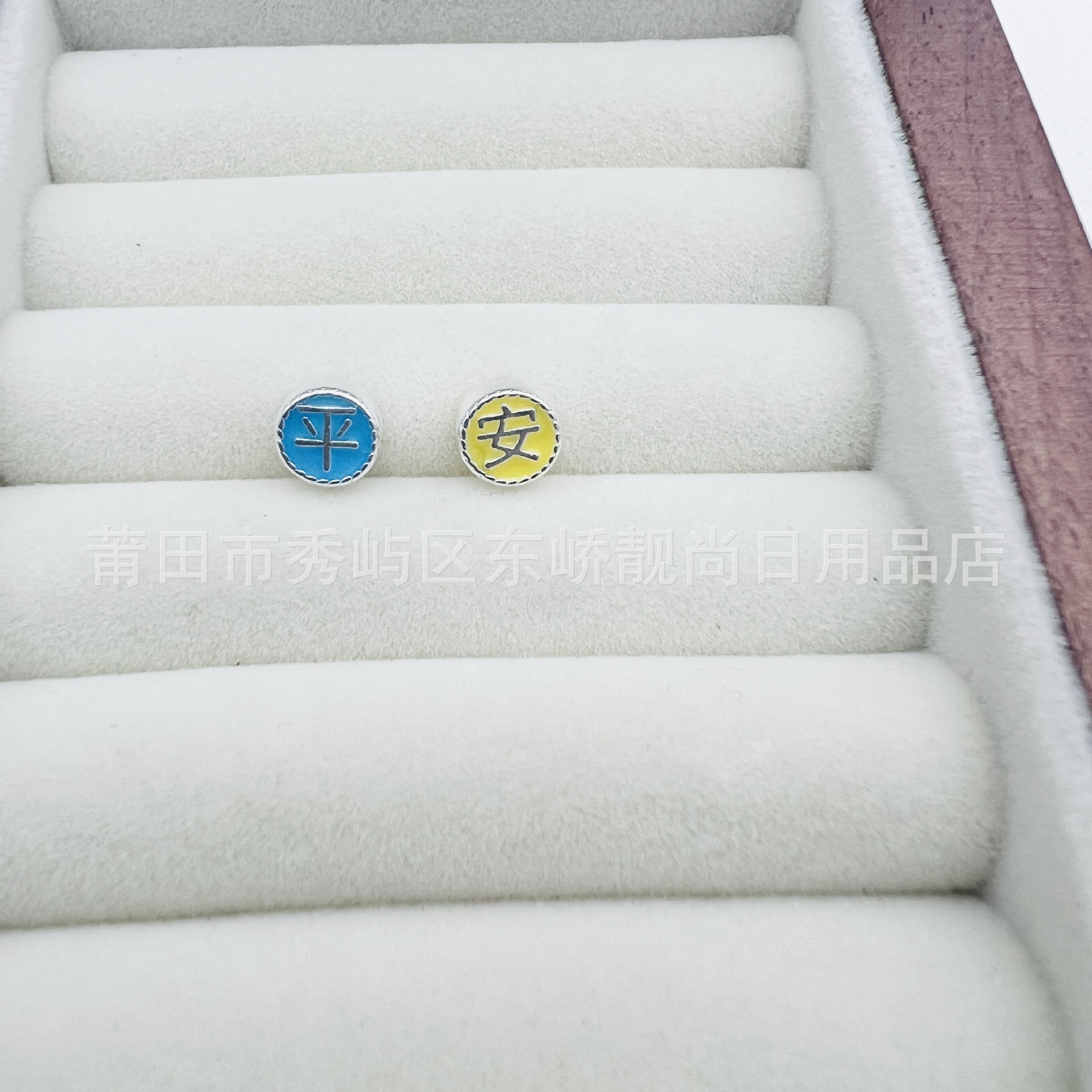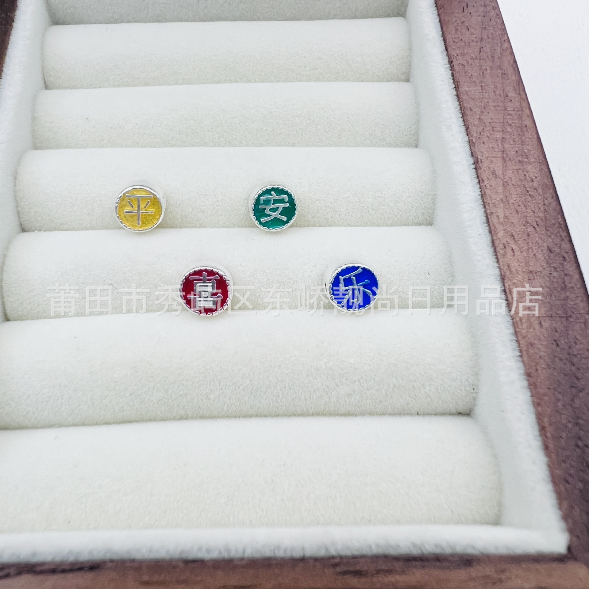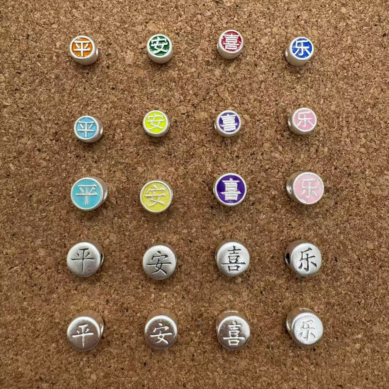 足银999平安喜乐串珠隔珠 镶嵌彩釉3D硬银手链配件 复古手工饰品
