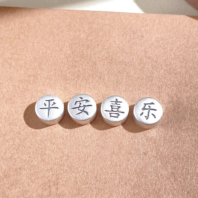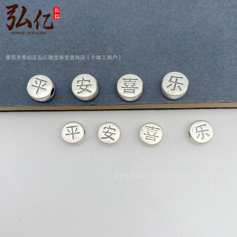 999足银平安喜乐隔珠3D硬银散珠配件DIY手工串珠编绳手链银配饰