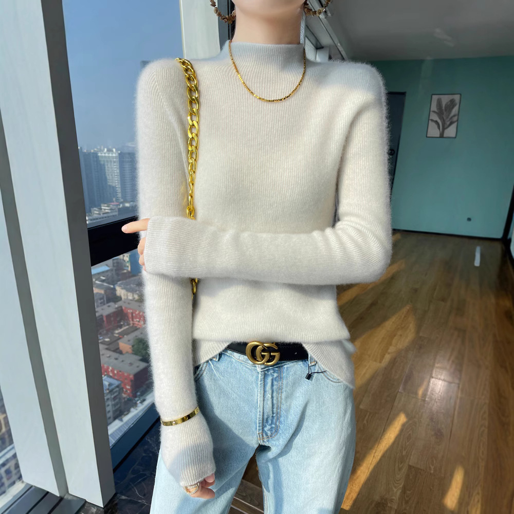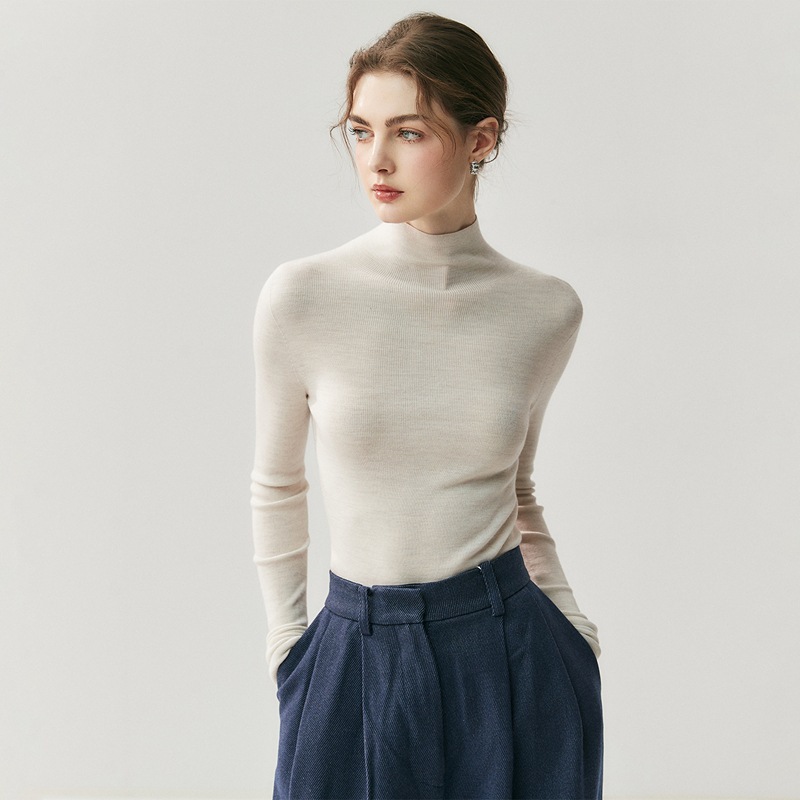 一线成衣山羊绒衫女半高领毛衣修身显瘦小个子内搭羊毛针织打底衫