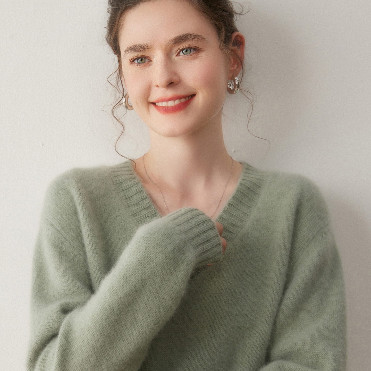 洋气百搭V领山羊绒衫女慵懒风软糯针织衫时尚V领羊毛衫针织衫
