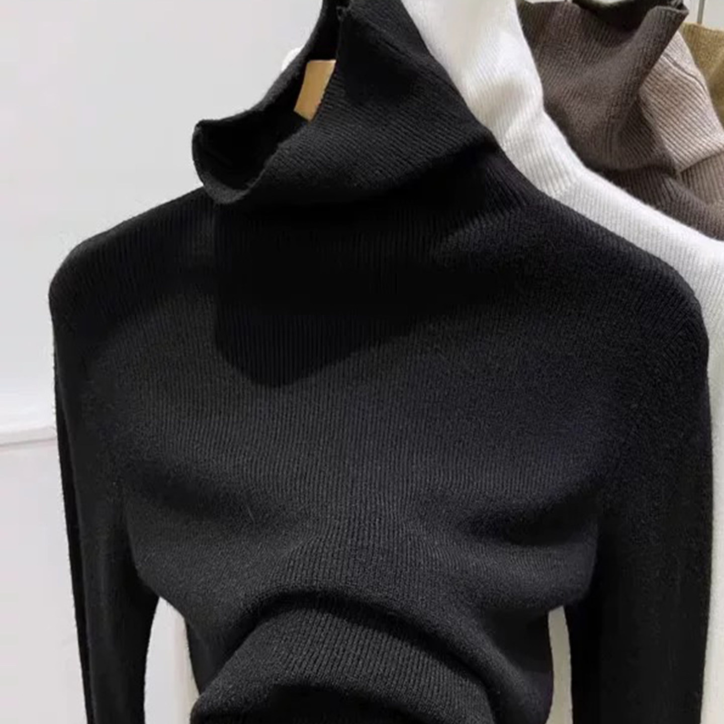 一线成衣~新款高领羊绒衫女堆领修身显瘦百搭针织打底毛衣