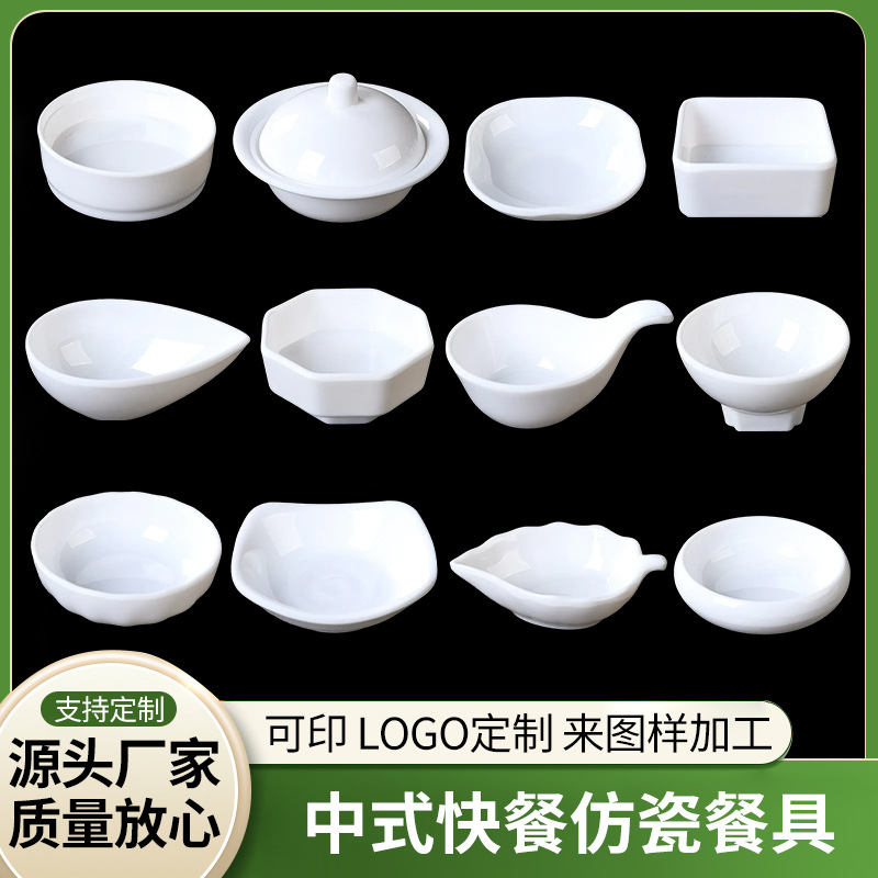 白色密胺仿瓷婉日料店食堂小碗菜餐具中式快餐店商用餐具套装组合