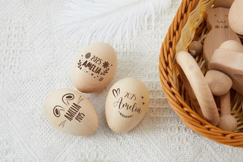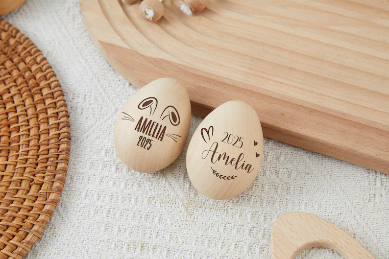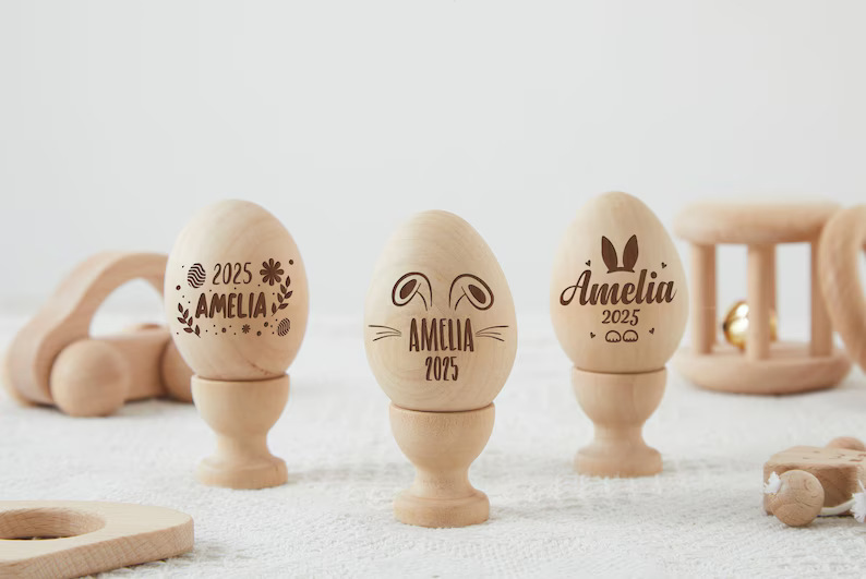 etsy个性化雕刻木质鸡蛋复活节彩蛋玩具仿真可涂鸦儿童过家家玩具
