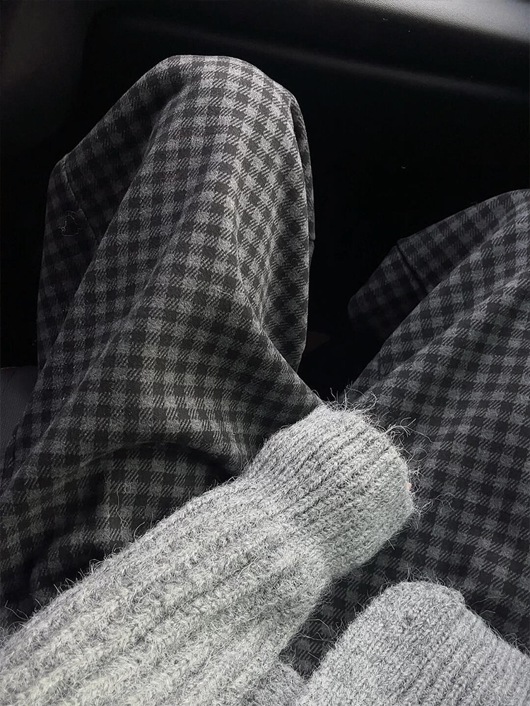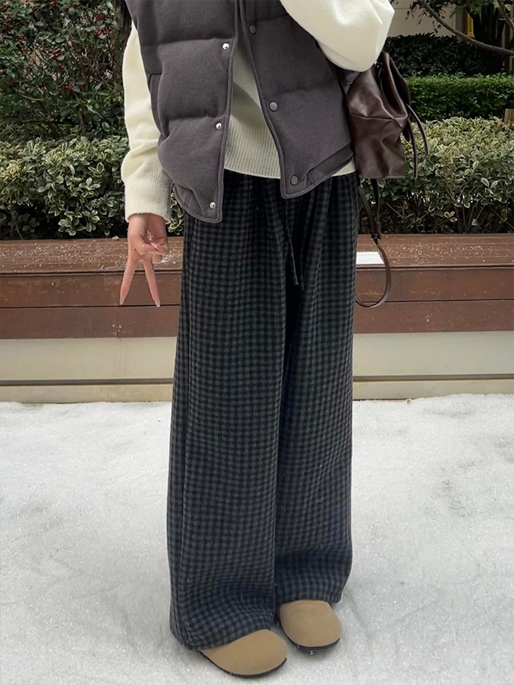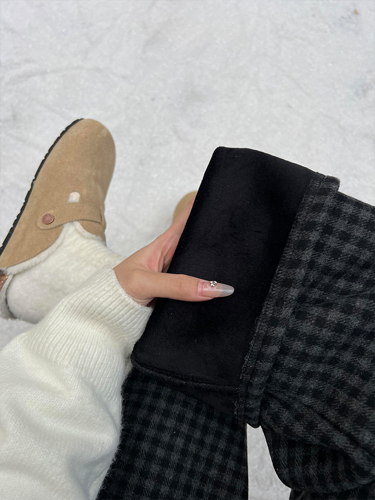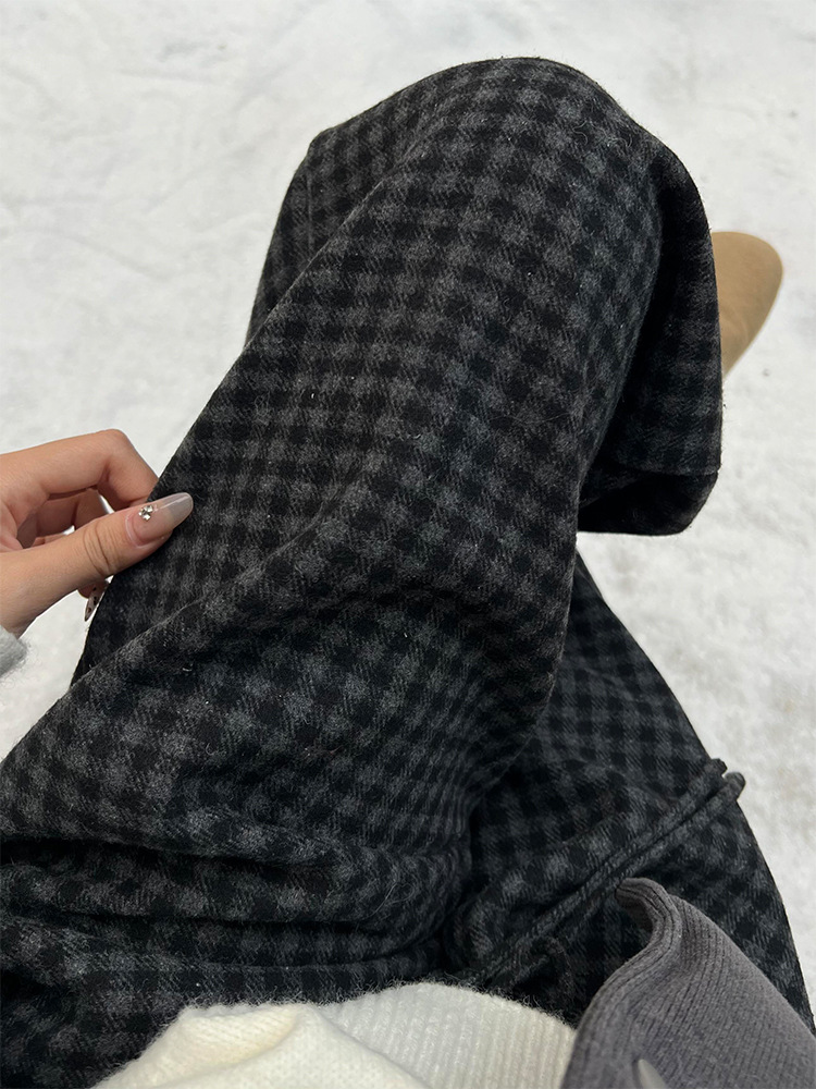加绒毛呢格子阔腿裤女秋冬2025新款高腰显瘦高级感直筒休闲裤3895