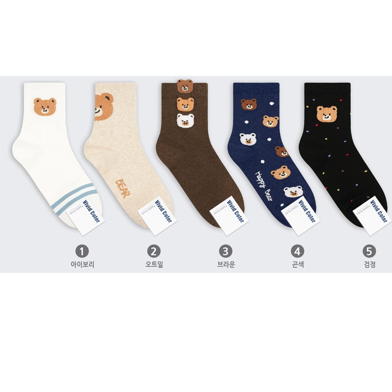 韩国袜子女东大门2025春季新款蝴蝶结小熊卡通袜vivid森系中筒棉