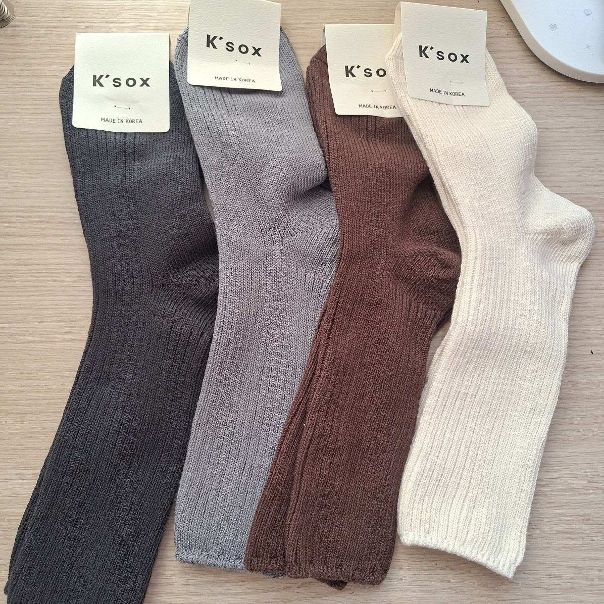韩国ksox女袜2025秋冬粗线针织竖纹坑条质感棉袜简约纯色百搭长袜