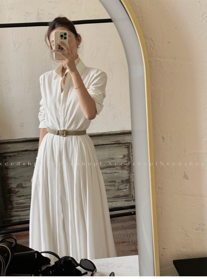 春の新型シンプルで知的でゆったりしていて、痩せているシャツのワンピースにベルト146がついています。