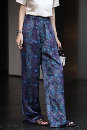 シルク香りの雲糸おしゃれワイドパンツ夏新作ウエストゴム万能ストレートパンツ39