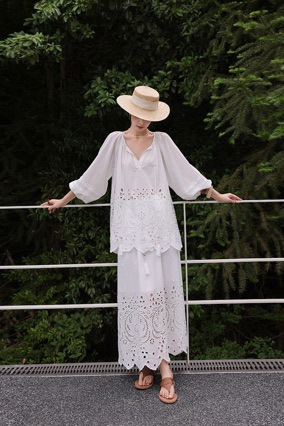西洋風の年齢軽減スーツ夏の新しいルーズ中空ホワイトトップ ➕ フォレストスカート2点セット 146