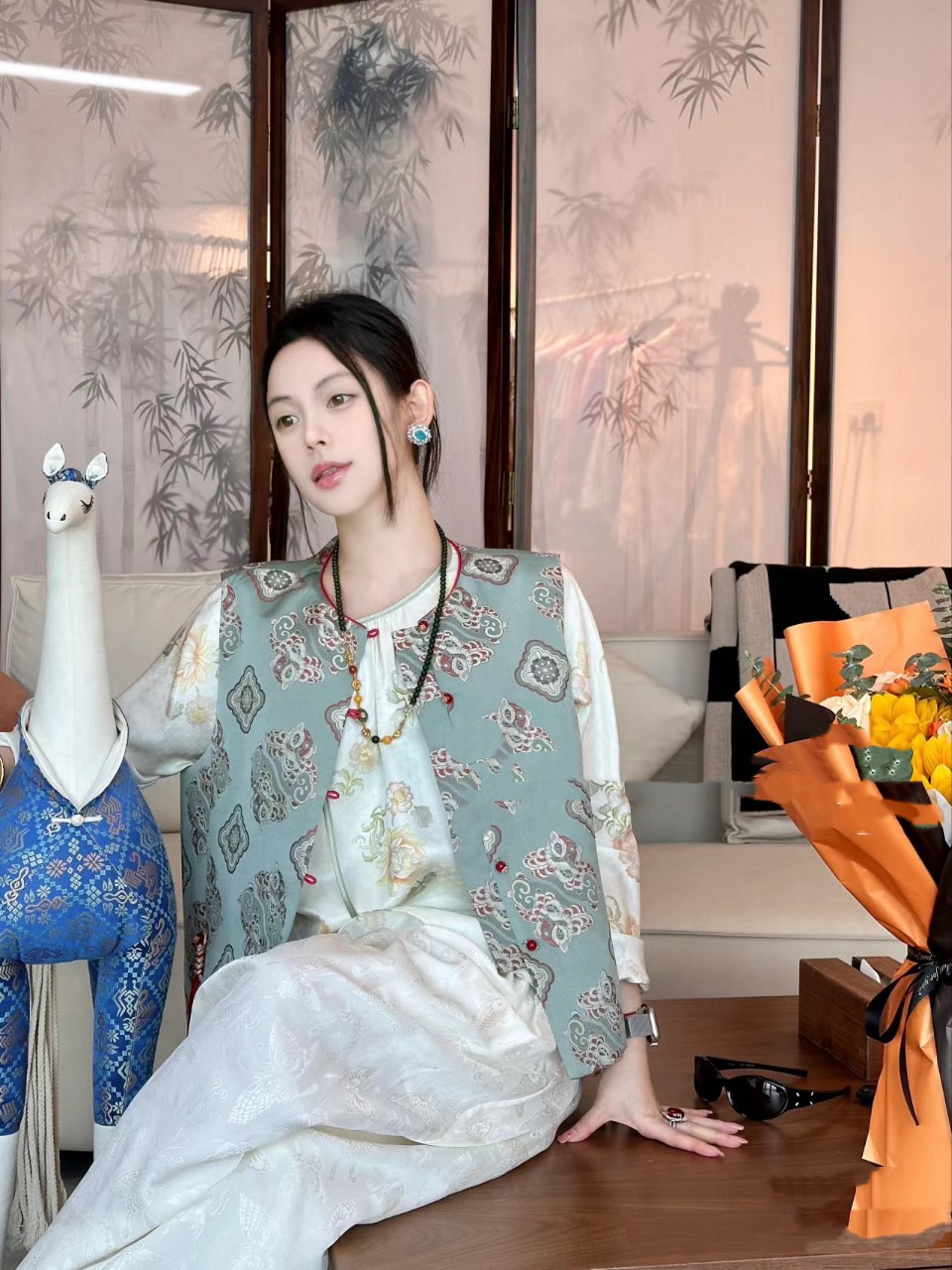 万事如意中国式門襟国馬甲新中国式ジャカード馬挟み肉がやせて見えるベスト146