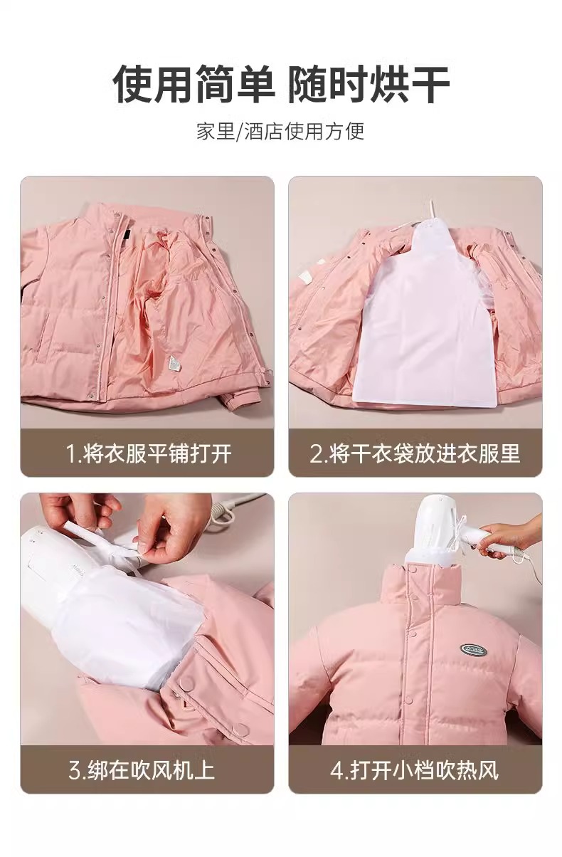 羽绒服蓬松神器吹风机速干衣袋便携衣物烘干家用冬季衣服烘干机袋