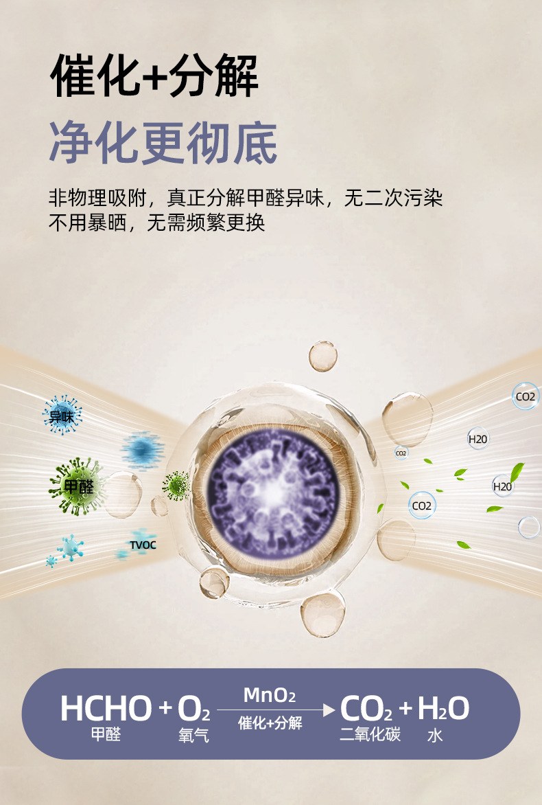 功能1 除甲醛,除异味,催化分解免晒除醛,衣柜除味,新房急入住除甲醛,除苯、氨TVOC