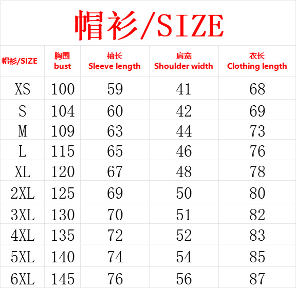 尺码 S,M,L,XL,XXL,XXXL,4XL,5XL,6XL