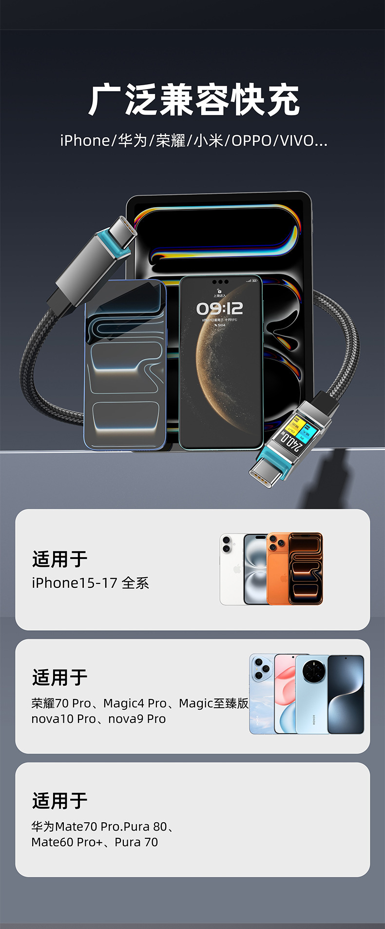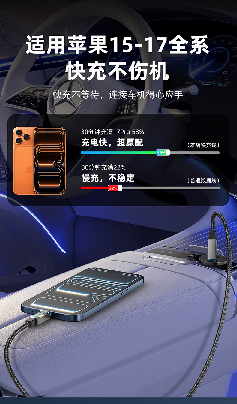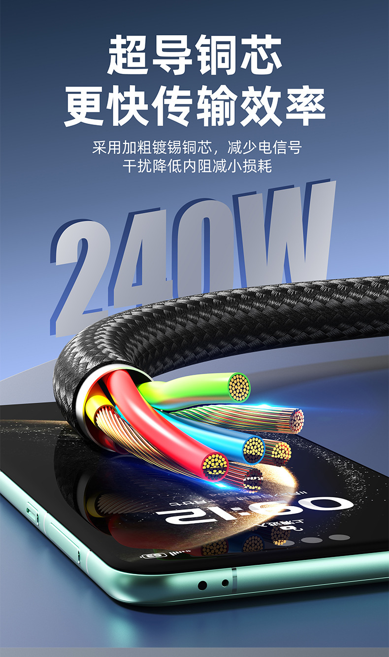 240W超级快充数据线适用苹果17华为安卓手机平板笔记本Type-C车载