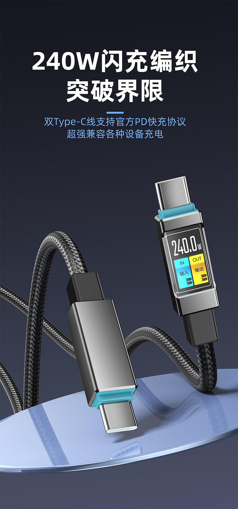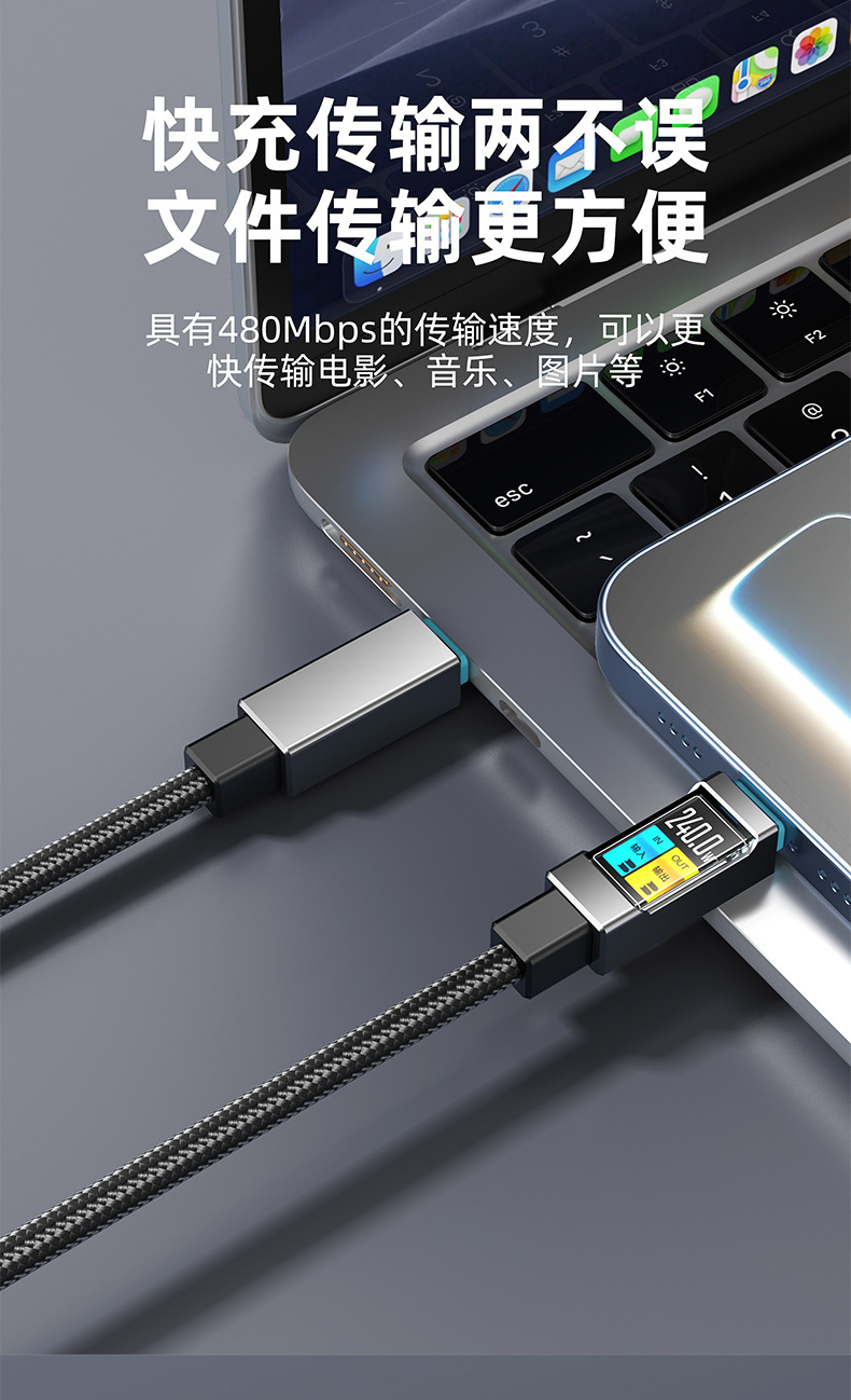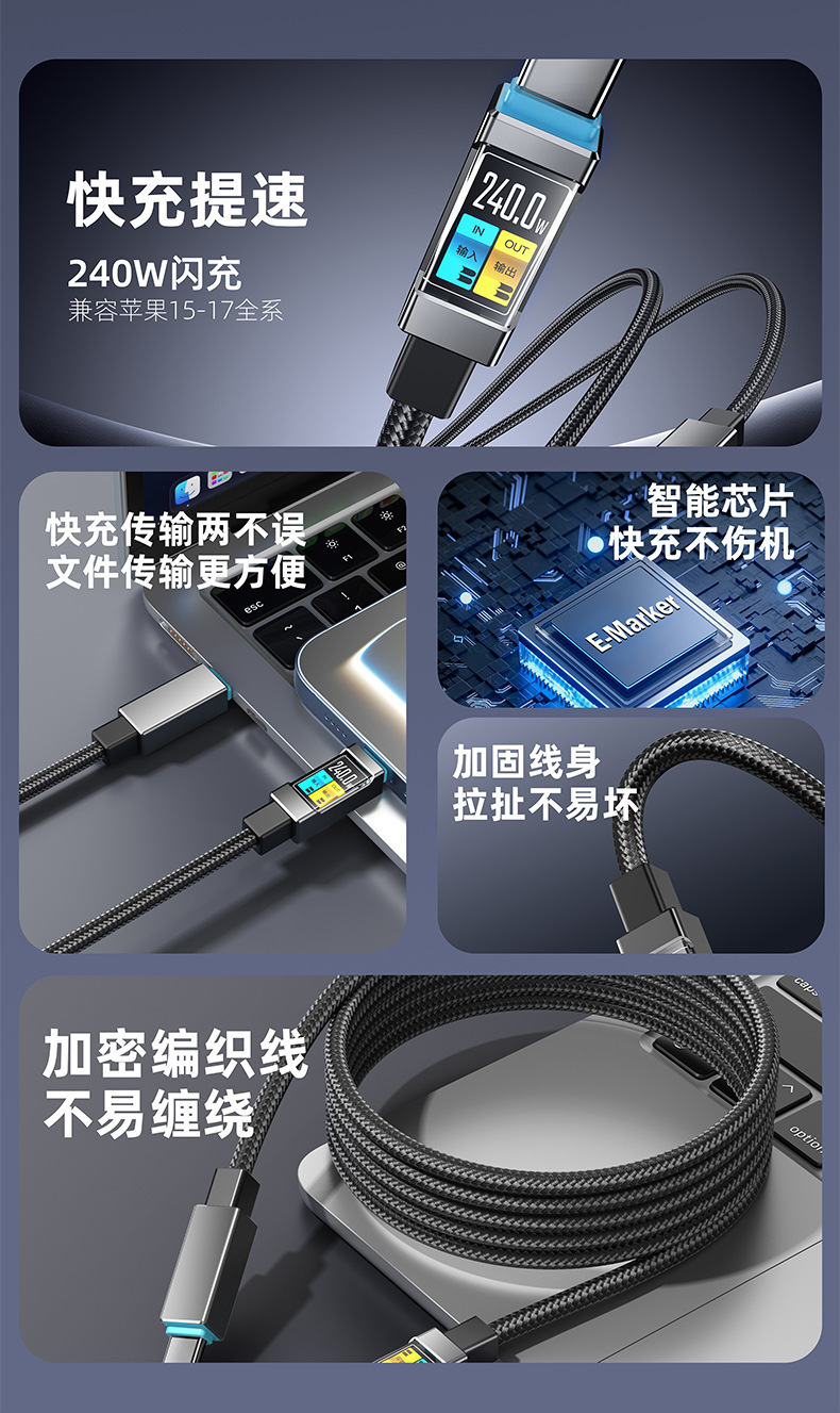 240W双头Type-c快充数据线c对c适用手机华为苹果笔记本快充充电线