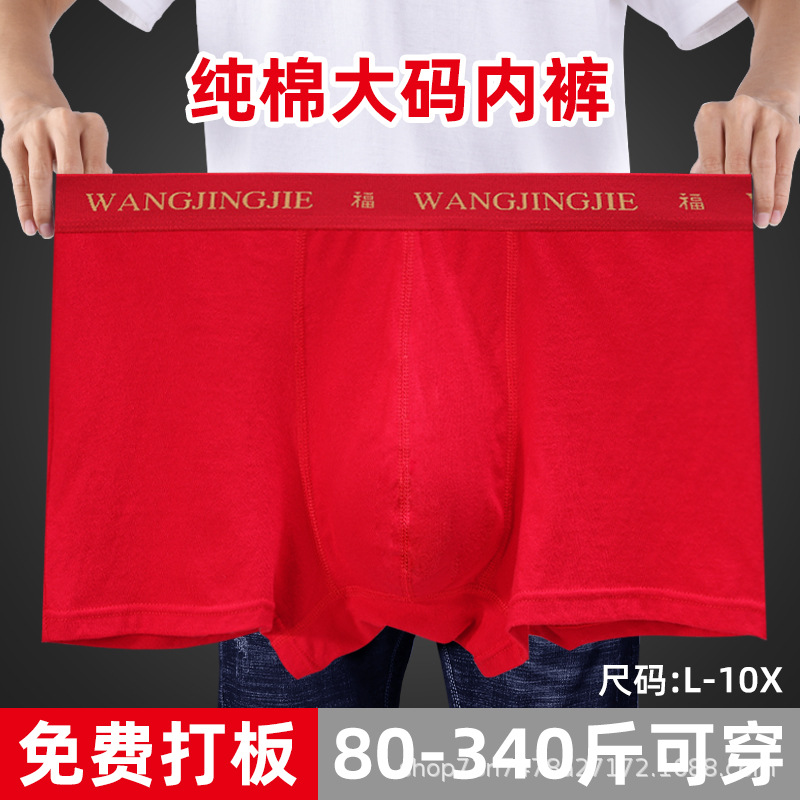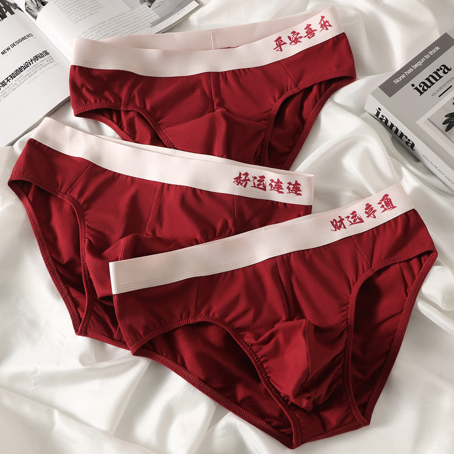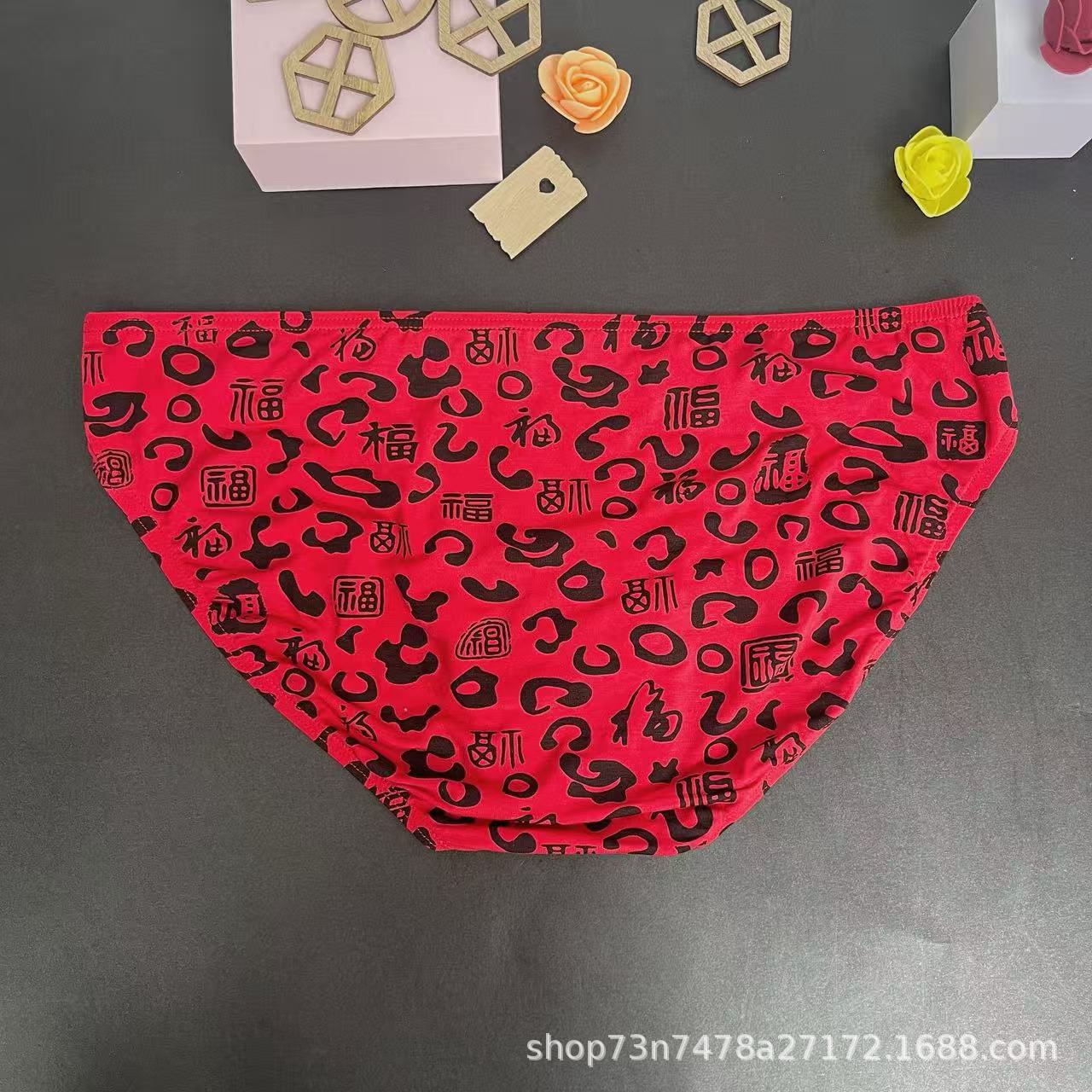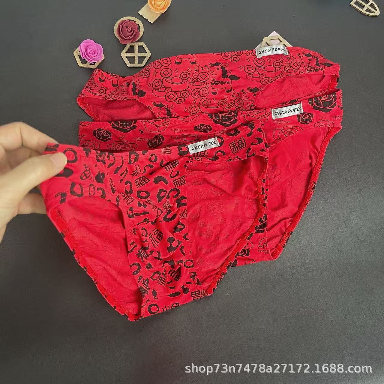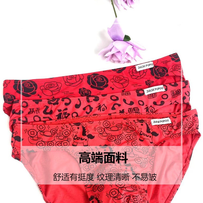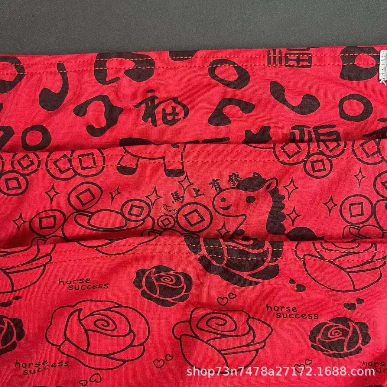 本命年男士红色三角内裤纯棉中腰喜庆吉利四字词好运男生三角裤