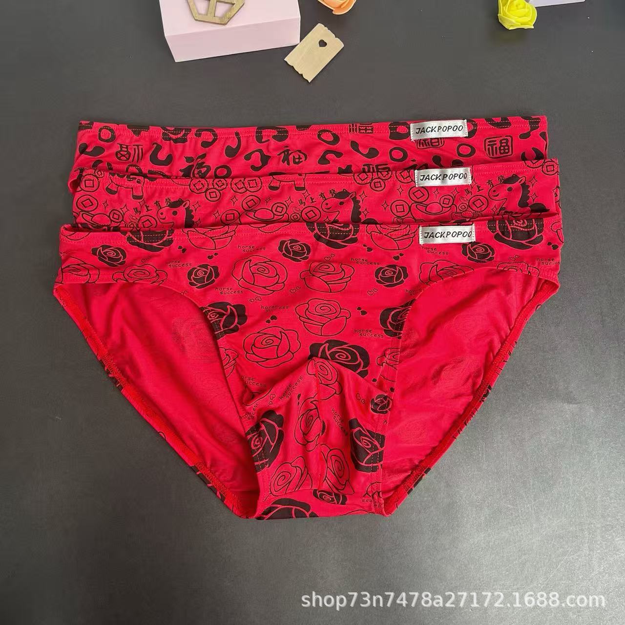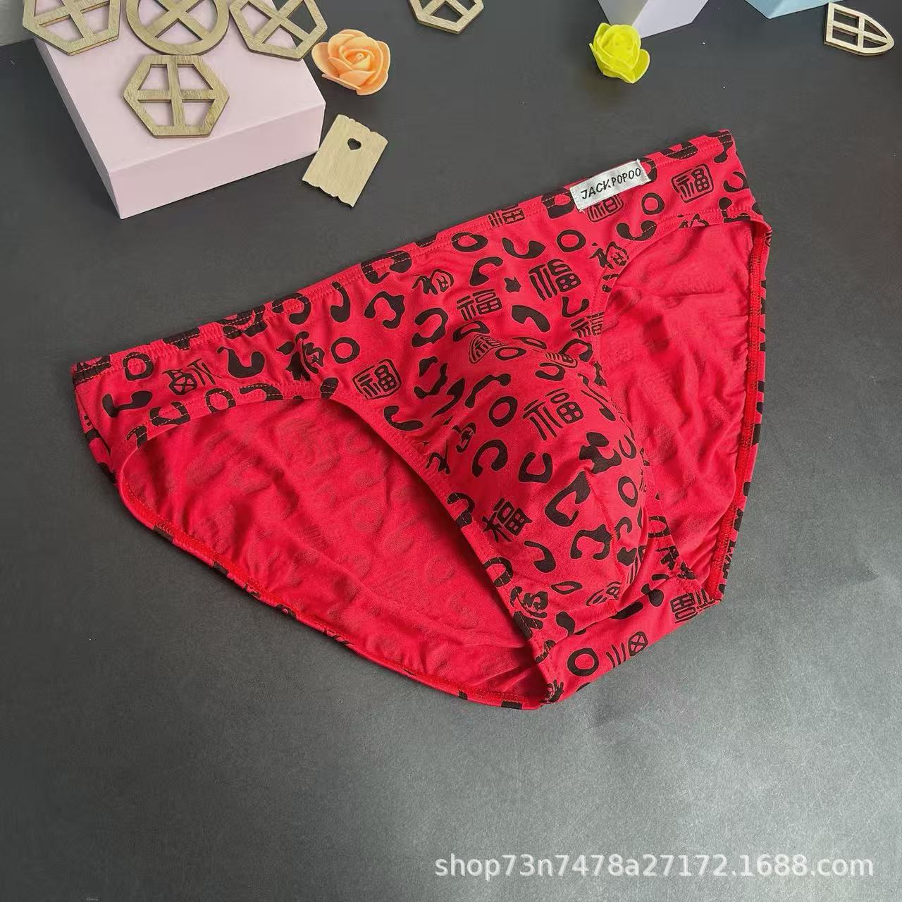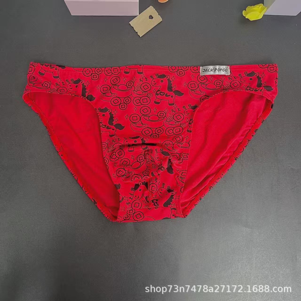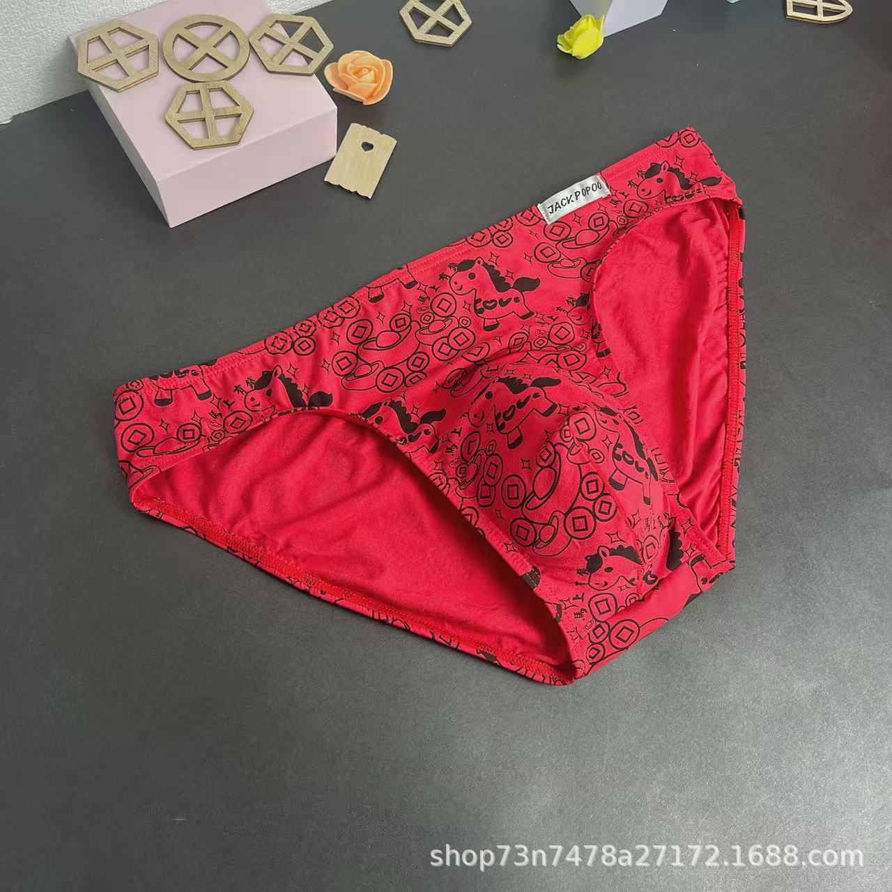 马年内裤兰精莫代尔红色男士三角印花低腰裆部单层细带窄边男内裤