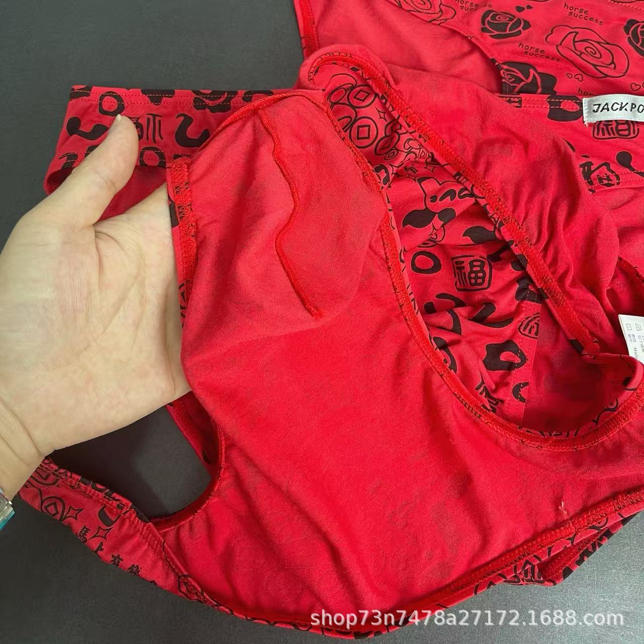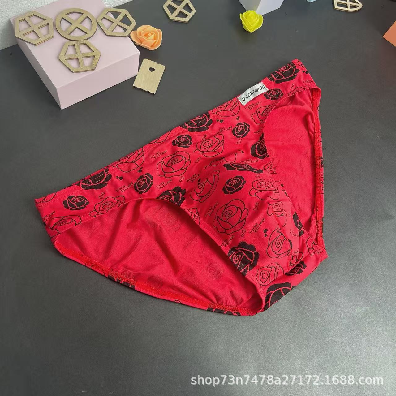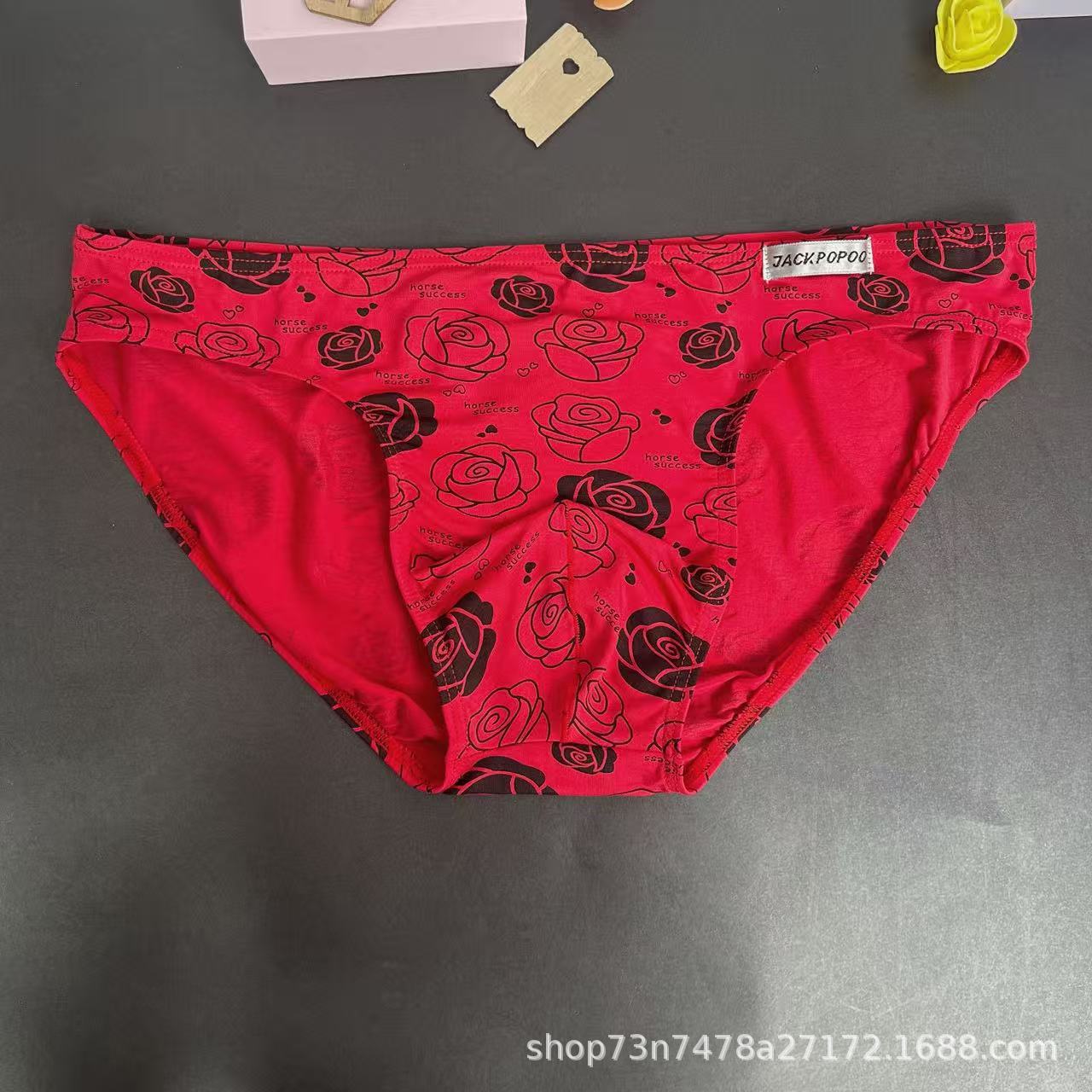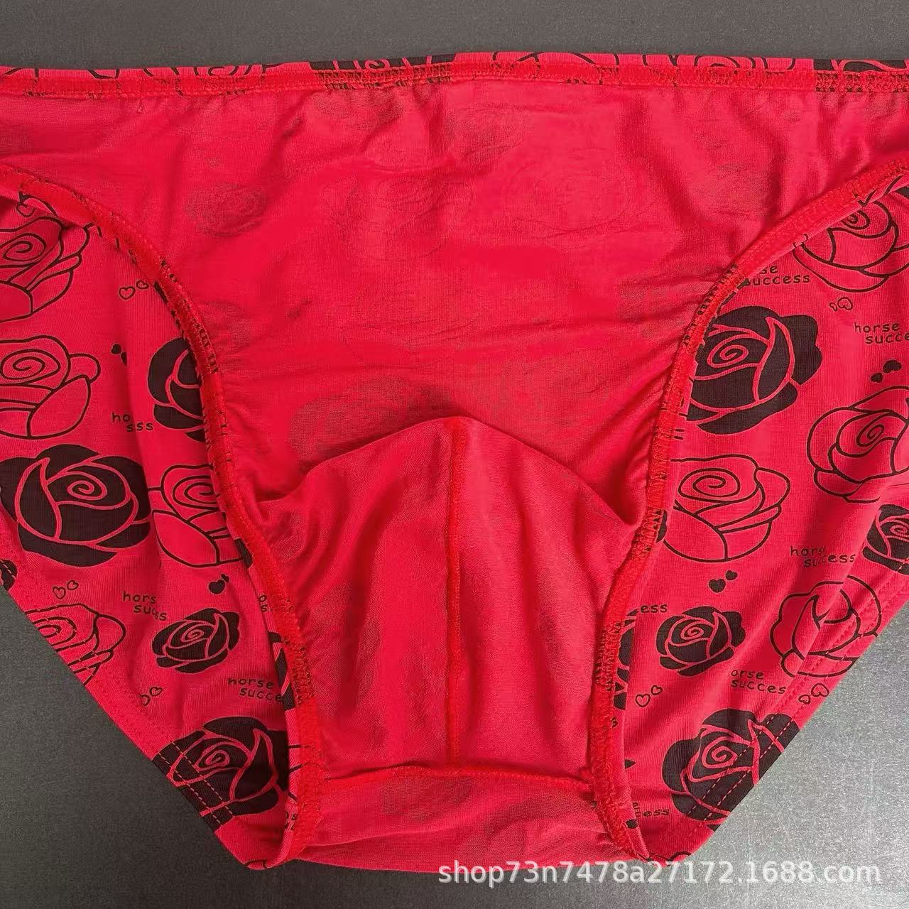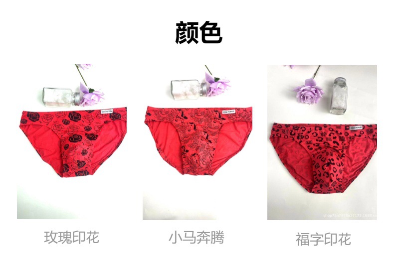 马年内裤兰精莫代尔红色男士三角印花低腰裆部单层细带窄边男内裤