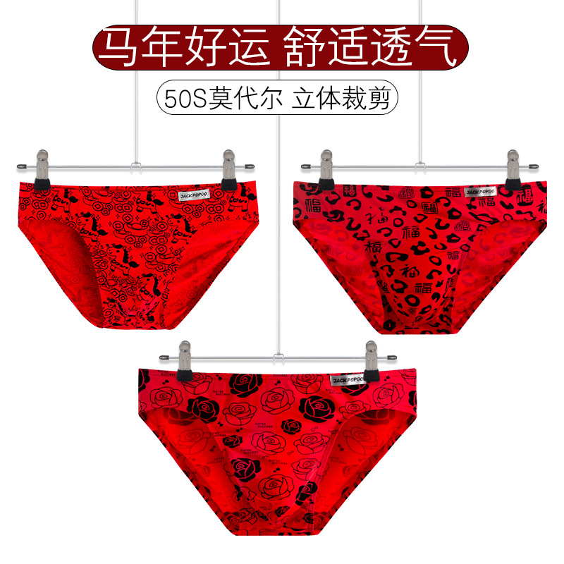 本命年马年大红结婚男士三角内裤兰精莫代尔高弹透气吸汗柔软短裤
