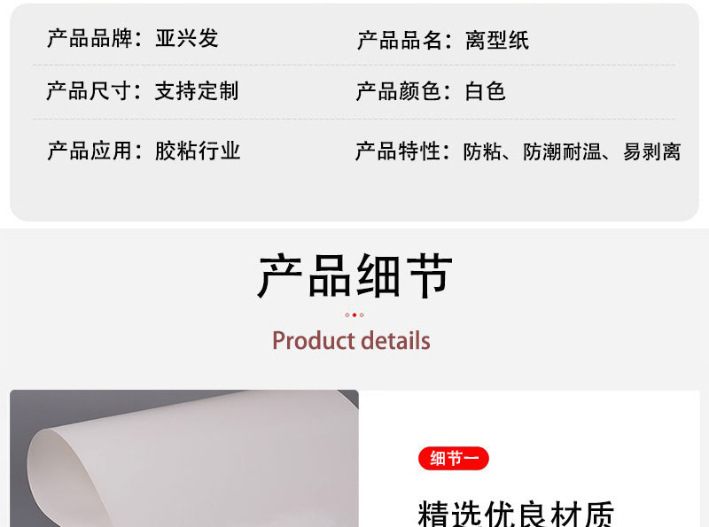白色格拉辛离型纸单硅标签纸隔离纸防粘双硅印刷纸可切割尺寸