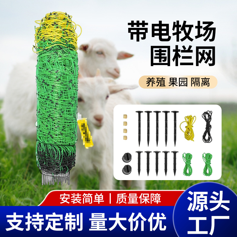 厂家牧场围栏网50米长带电围栏网农场拦羊网电子围栏网露营围网