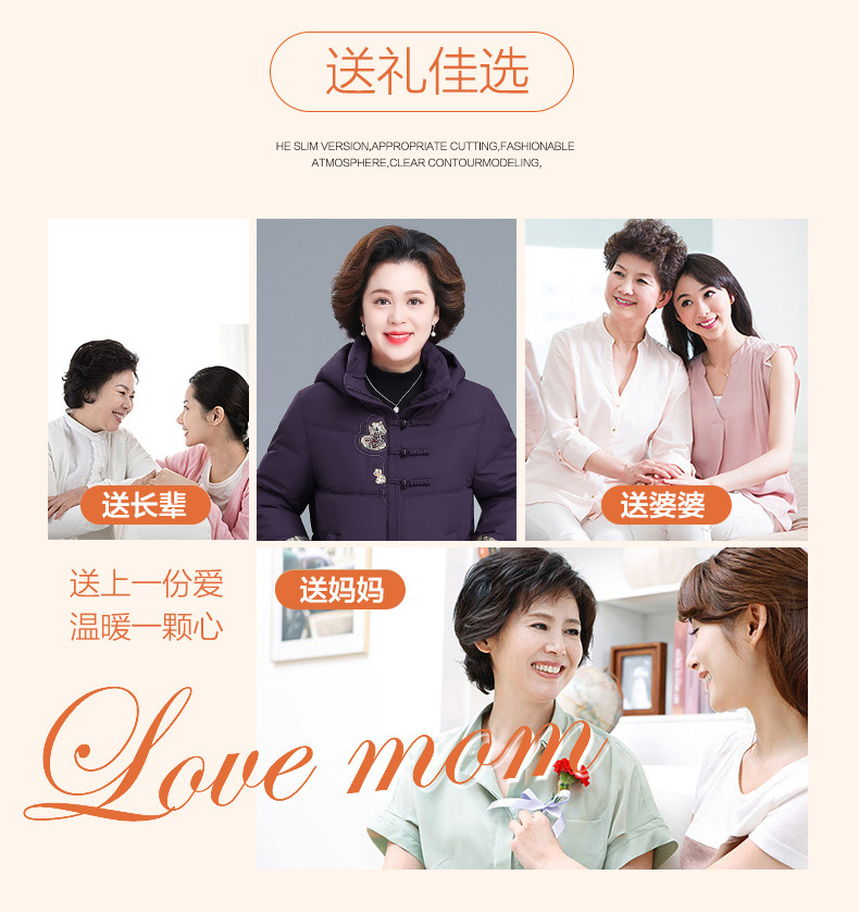小さい子供のお母さんの冬服のダウンジャケットの短いタイプの中年の女性の薄い小さい綿入れの上着の中で老年の婦人服の秋冬のコート
