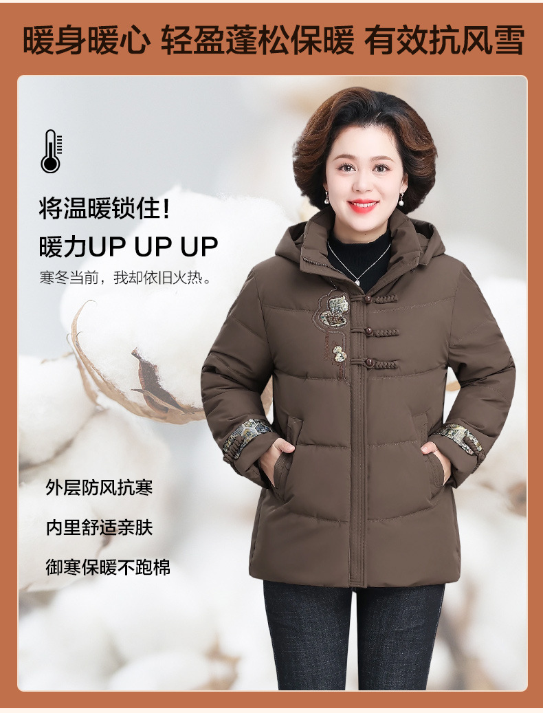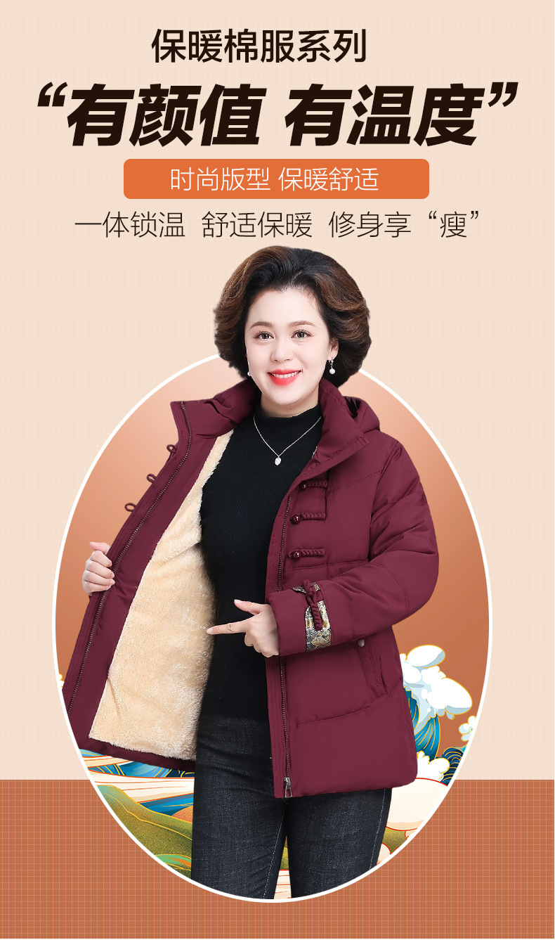 2025中年妈妈冬装新款中老年保暖棉服外套新款国风加绒加厚棉衣女
