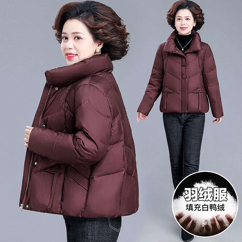 中年妈妈冬装羽绒服短款加厚上衣中老年人秋冬季棉袄外套女款大码