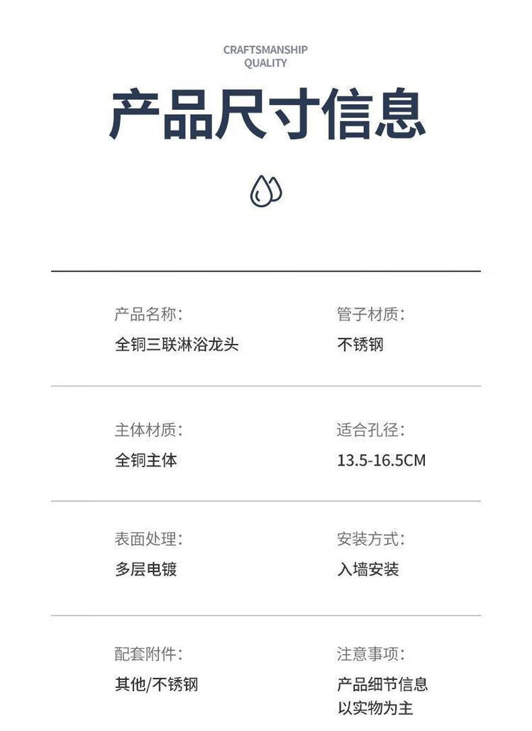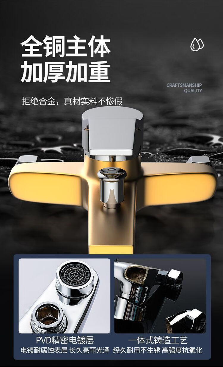 精铜三联淋浴龙头花洒套装冷热两用混水阀热水器浴室浴缸淋浴整套