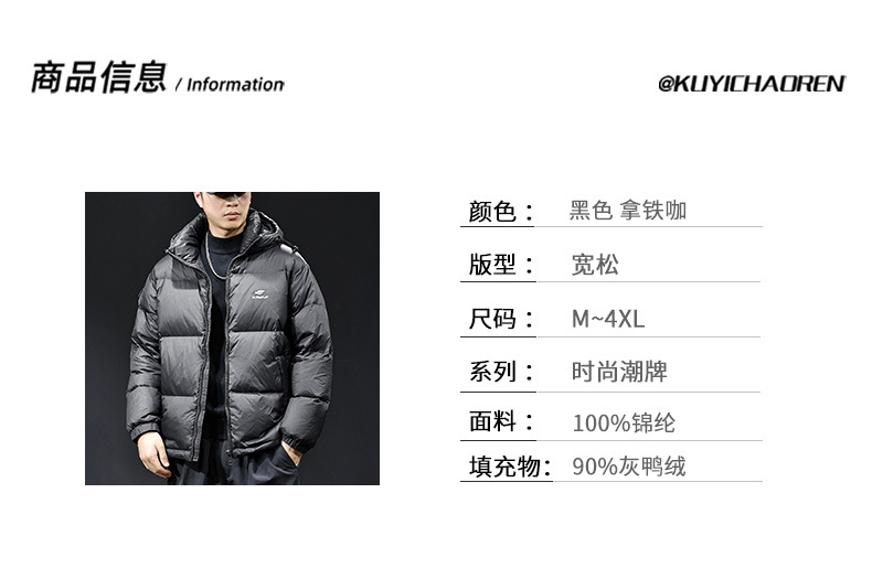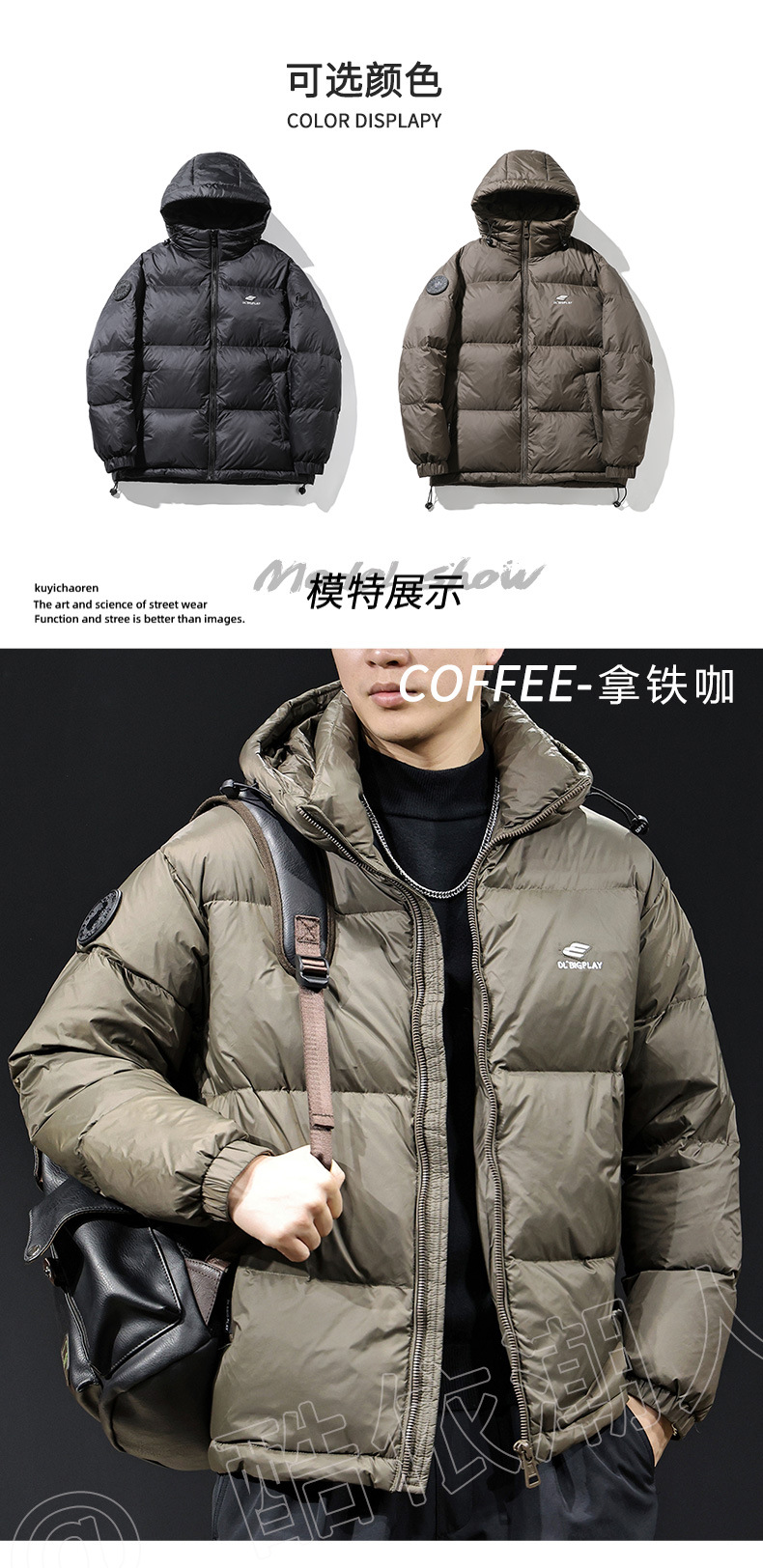 2025冬季新款羽绒服男士连帽加厚保暖外套潮牌宽松大码休闲面包服