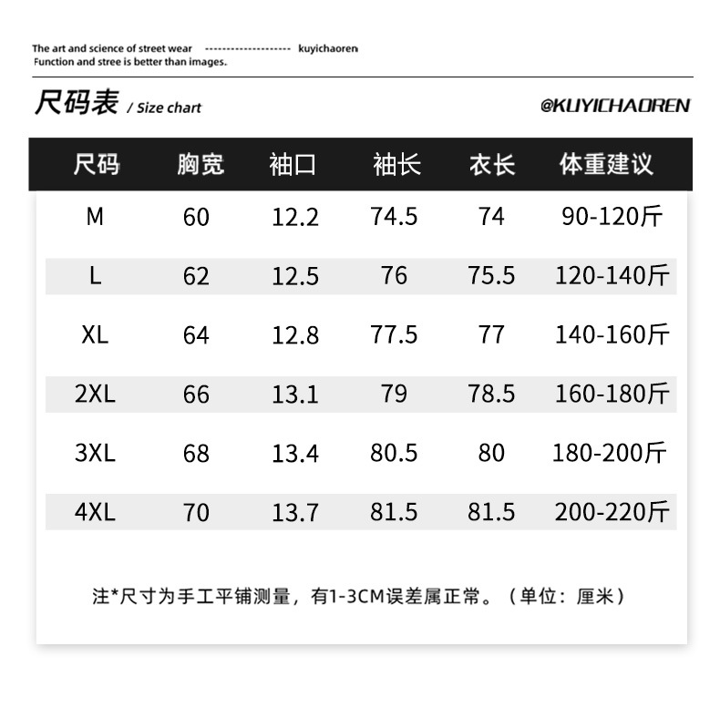 尺码 M 适合100-120斤,L 适合120-140斤,XL 适合140-160斤,2XL 适合160-180斤,3XL 适合180-200斤,4XL 适合200-220斤